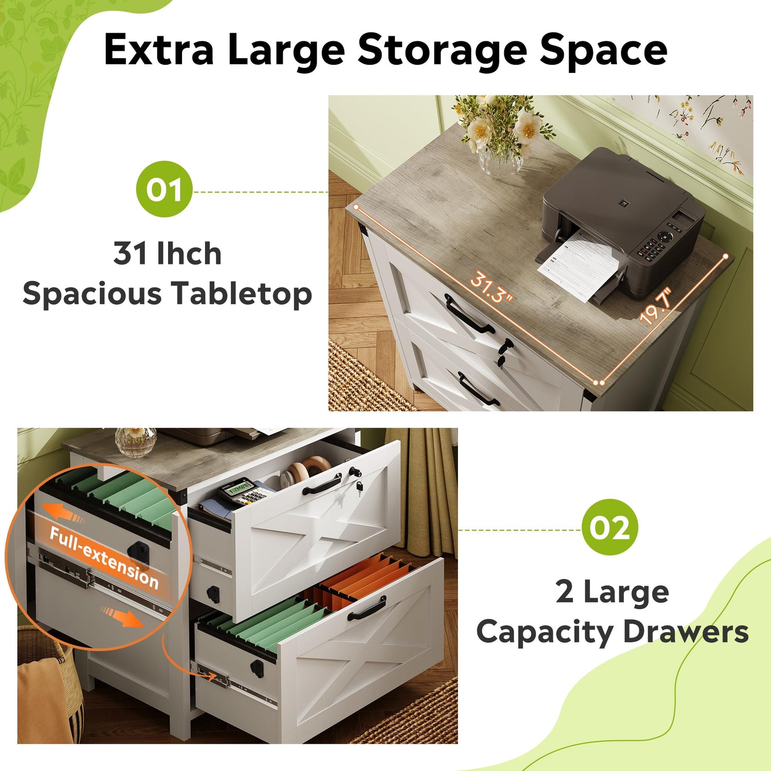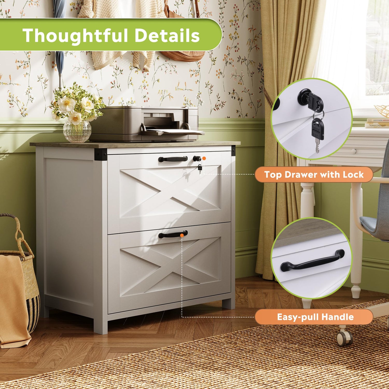 DEVAISE 2 Drawer Farmhouse File Cabinet with Lock, Leteral Filing Cabinet for Letter/Legal/A4 Size, Wood Storage Cabinet for Home Office, White