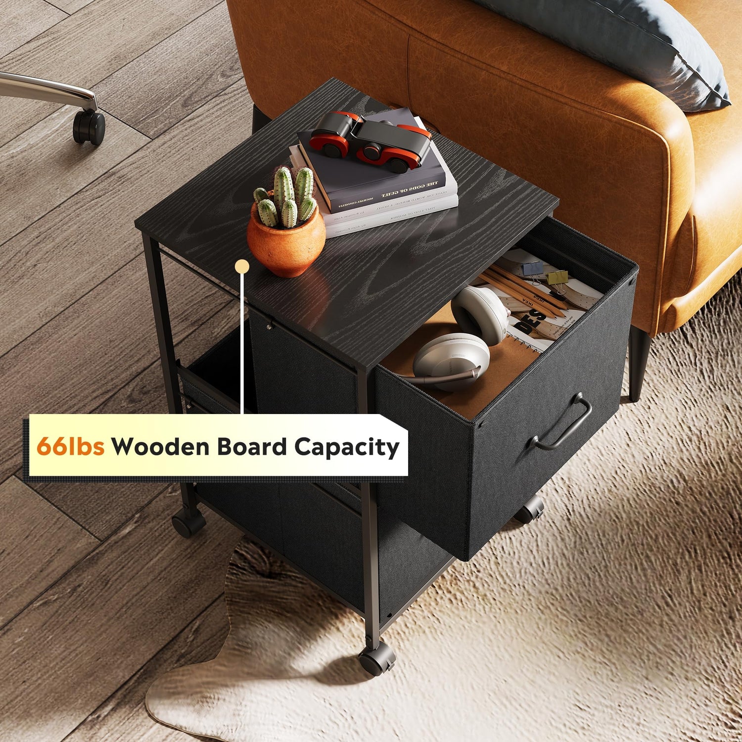 - Easy to Move: Rolling on 4 wheels, this mobile file cabinet can fix or move around your home office freely. Built-in brakes on front 2 casters to keep it in position and add stability. Unique fabric drawer design makes it only weigh 22 lbs. and light to move.