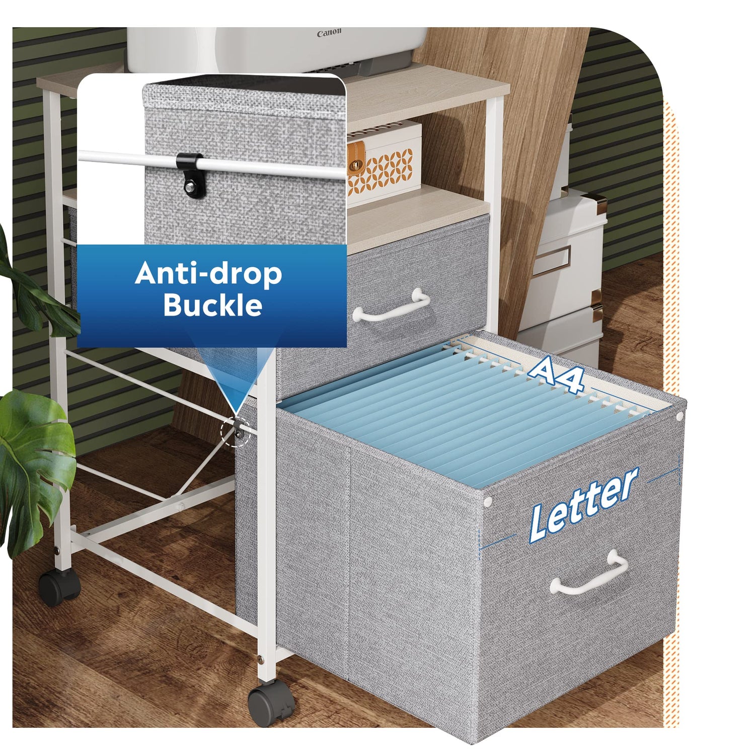 DEVAISE 2 Drawer Mobile File Cabinet, Rolling Printer Stand with Open Storage Shelf, Fabric Vertical Filing Cabinet fits A4 or Letter Size for Home Office, Light Grey