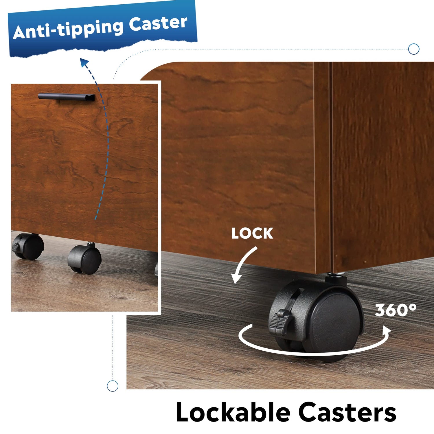 - DURABLE CASTERS: 5 rolling casters which can move smoothly on both woode floor and carpet. With front 2 lockable breaking wheels, makes office supply rested on top, like printer. Middle casters prevents tipping over when all drawers opened at the same time.