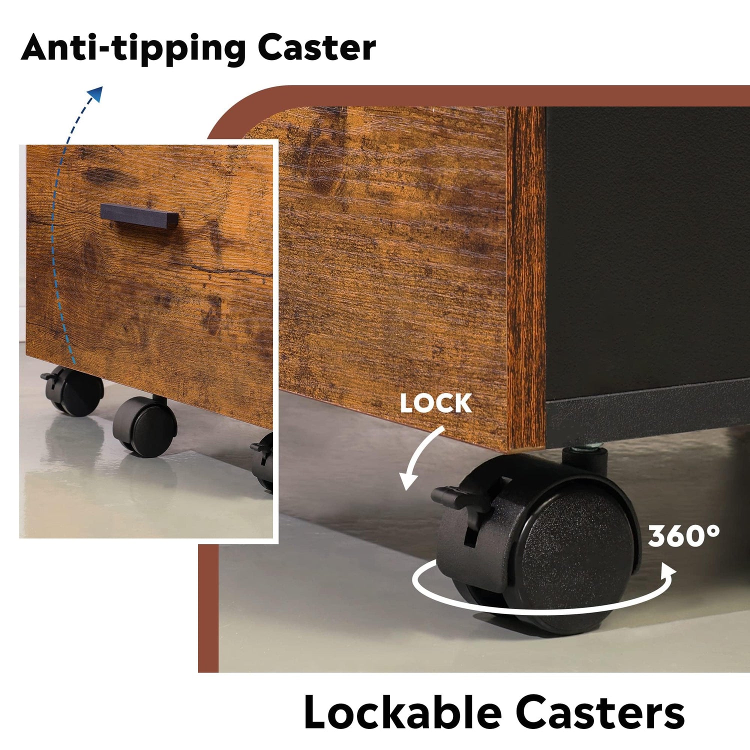 - ADD MORE MOBILITY: Rolling on 5 rotatable wheels, including 2 front casters with braking function and 1 center caster to prevent tipping, this filing cabinet can keep stable or move freely and safely according to your need.