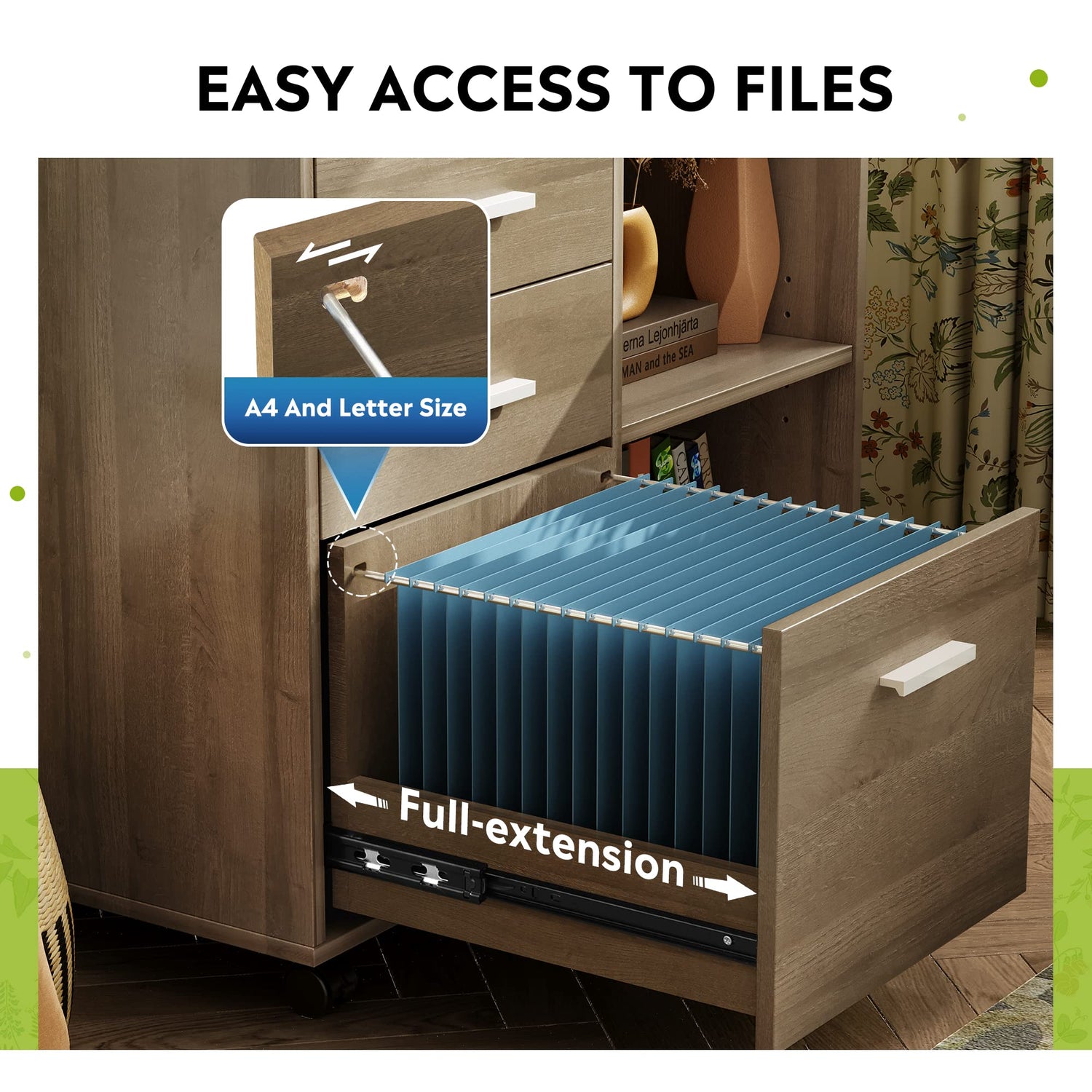 - MULTIFUNCTIONAL & STYLISH: This filing cabinet with open storage spaces, file drawers and storage cabinet is designed to keep the office machines, paper, files and suppliers organized. It can be fixed beside or under desk. The sleek and modern finish is an easy fit for office or home study.