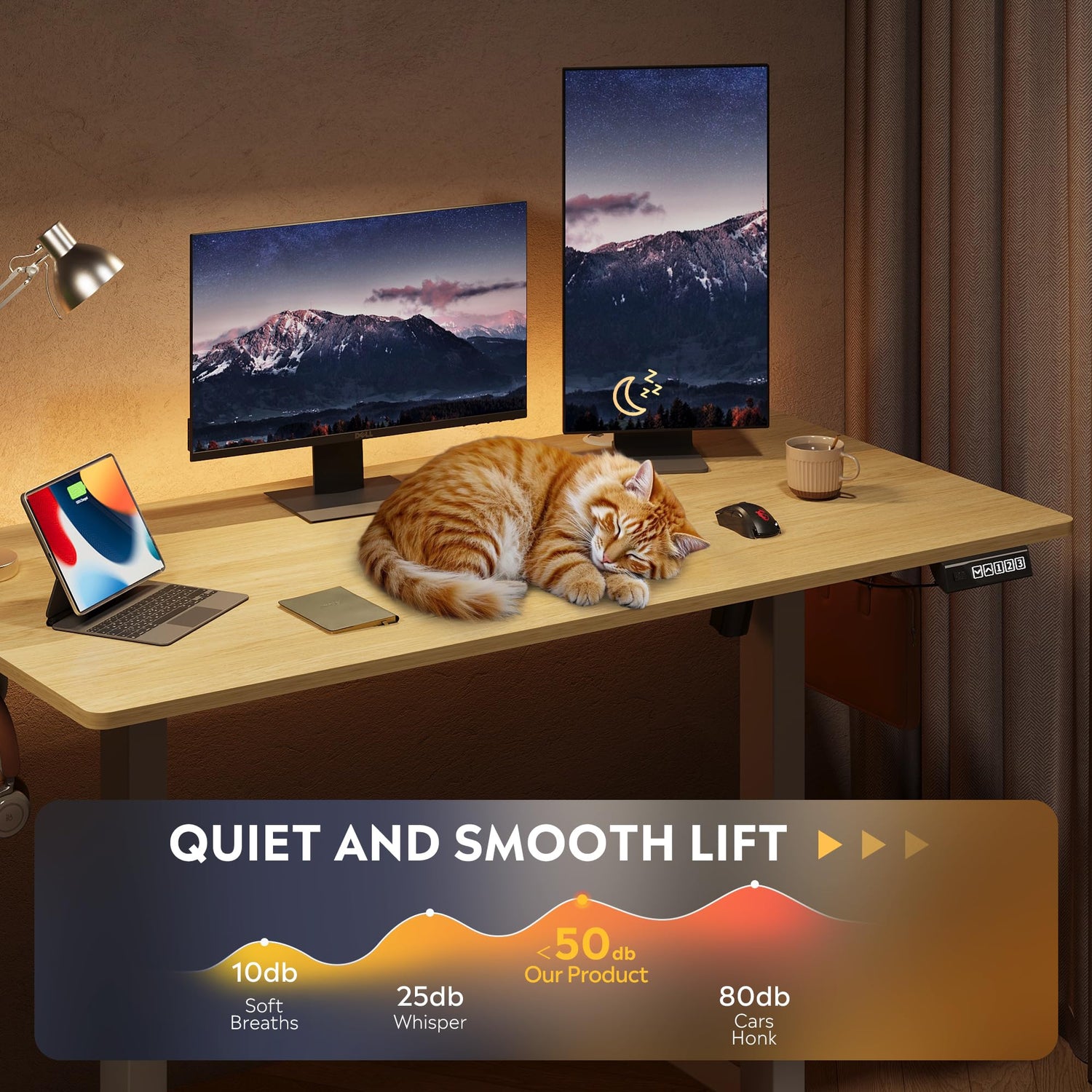 - Customized Sit Stand Desk : The reliable motor operates quietly (under 45 dB)and smoothly, all your things stay steady&secure in motion. The intuitive control panel allows you to preset 3 preferred heights, switch between sitting and standing positions has never been easier. Child lock for total peace of mind.
