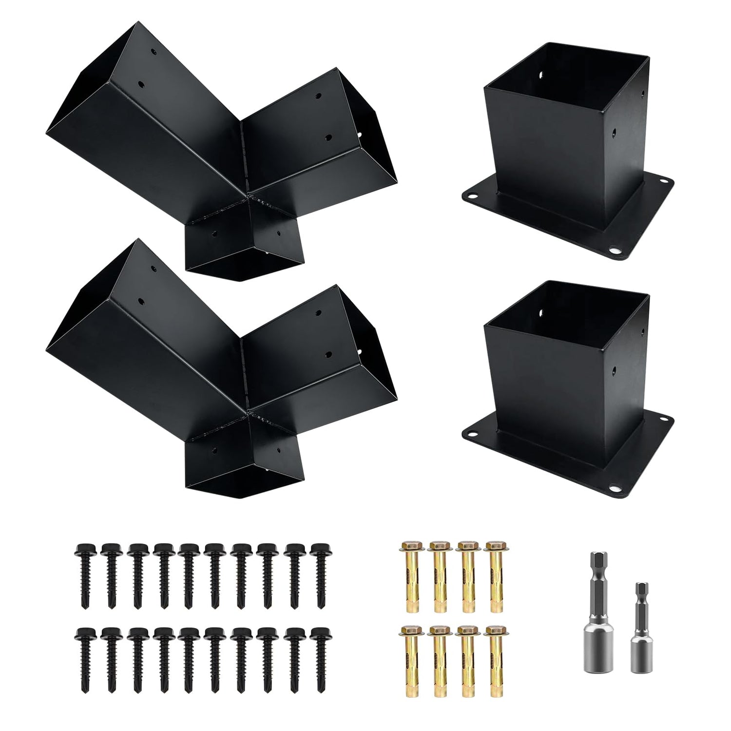 - Easy to Install & Maintain----We prepared a complete installation kit,the installation of the brackets do not require tedious steps,you just need to insert the wooden post into the bracket, and use the electric drill to drive in the screws to fix it.
