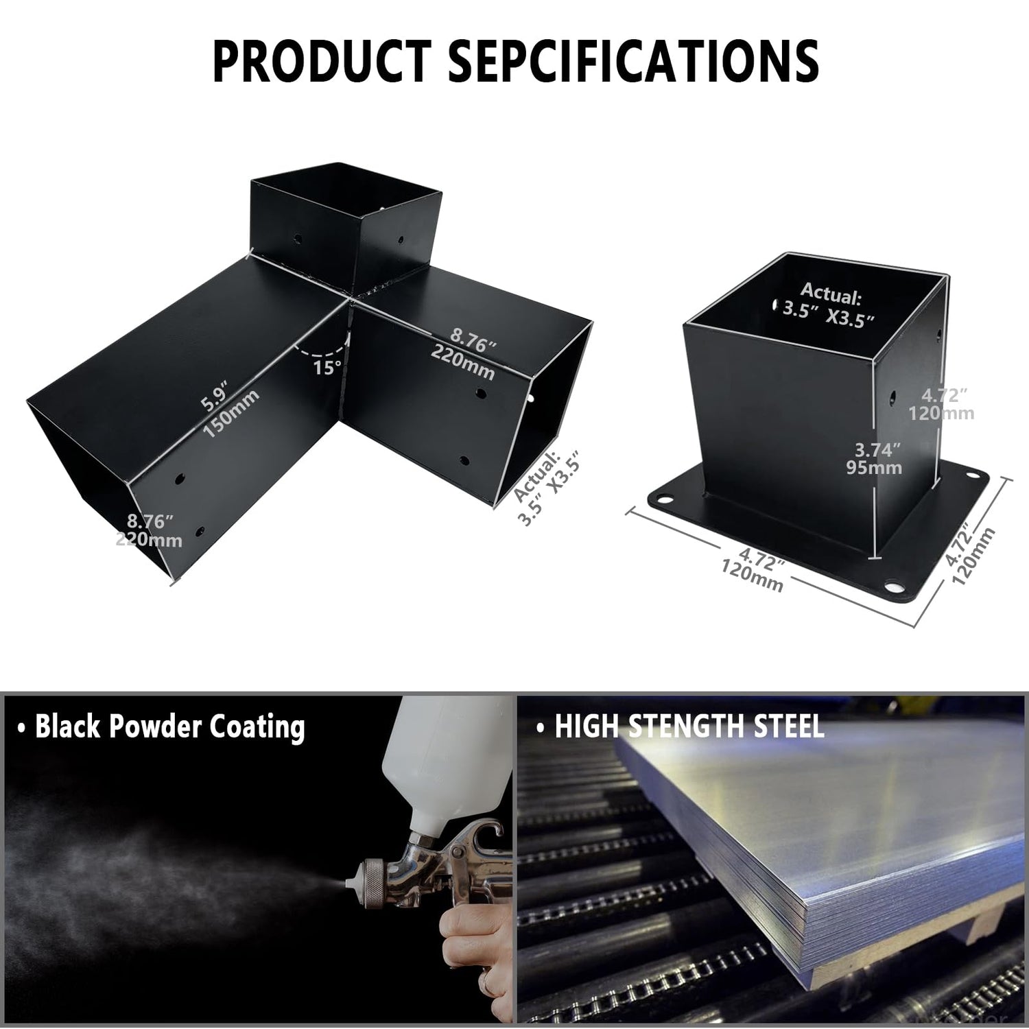 - Fit for 3.5" wood beam----The gazebo bracket takes a column-shaped design,each angle of corner connector is 180 degrees,Its inner size is 3.6 x 3.6"/9.15 x 9.15cm, which is perfect for 3.5"x3.5" wood beam,Before purchasing the product, please make sure the diameter of the wooden post is 3.5"