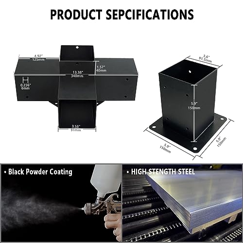- MULTIPLE APPLICATION----Petgola brakets kit are suitable for building pergolas, gazebos, playgrounds, tree houses, log cabins and other various scenarios, and can protect the end of the wooden column from rotting due to the complex outdoor environmen