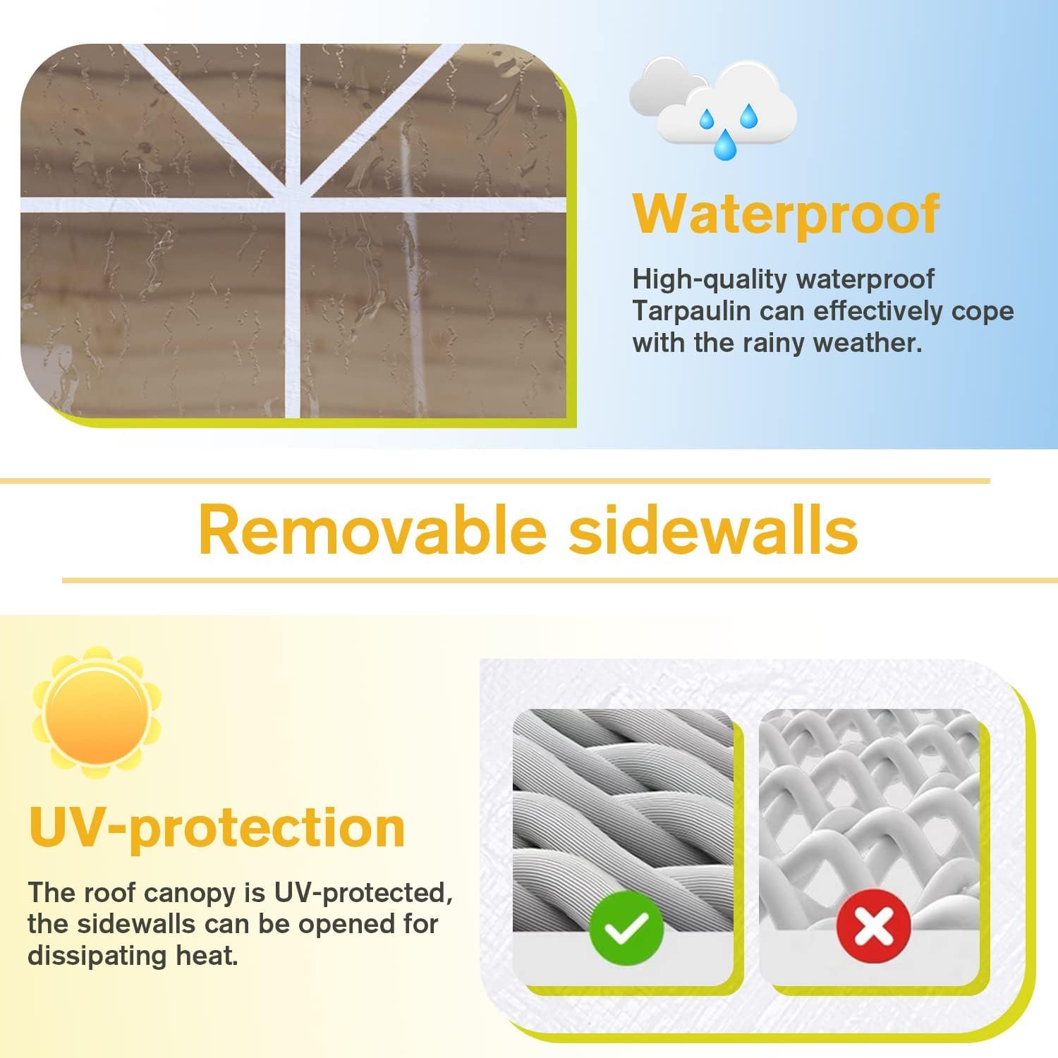 - Weather-Resistant & Durable - Constructed with a rust-proof steel frame and a waterproof, UV-blocking canopy. Reinforced with side ropes for enhanced stability in wind and rain.