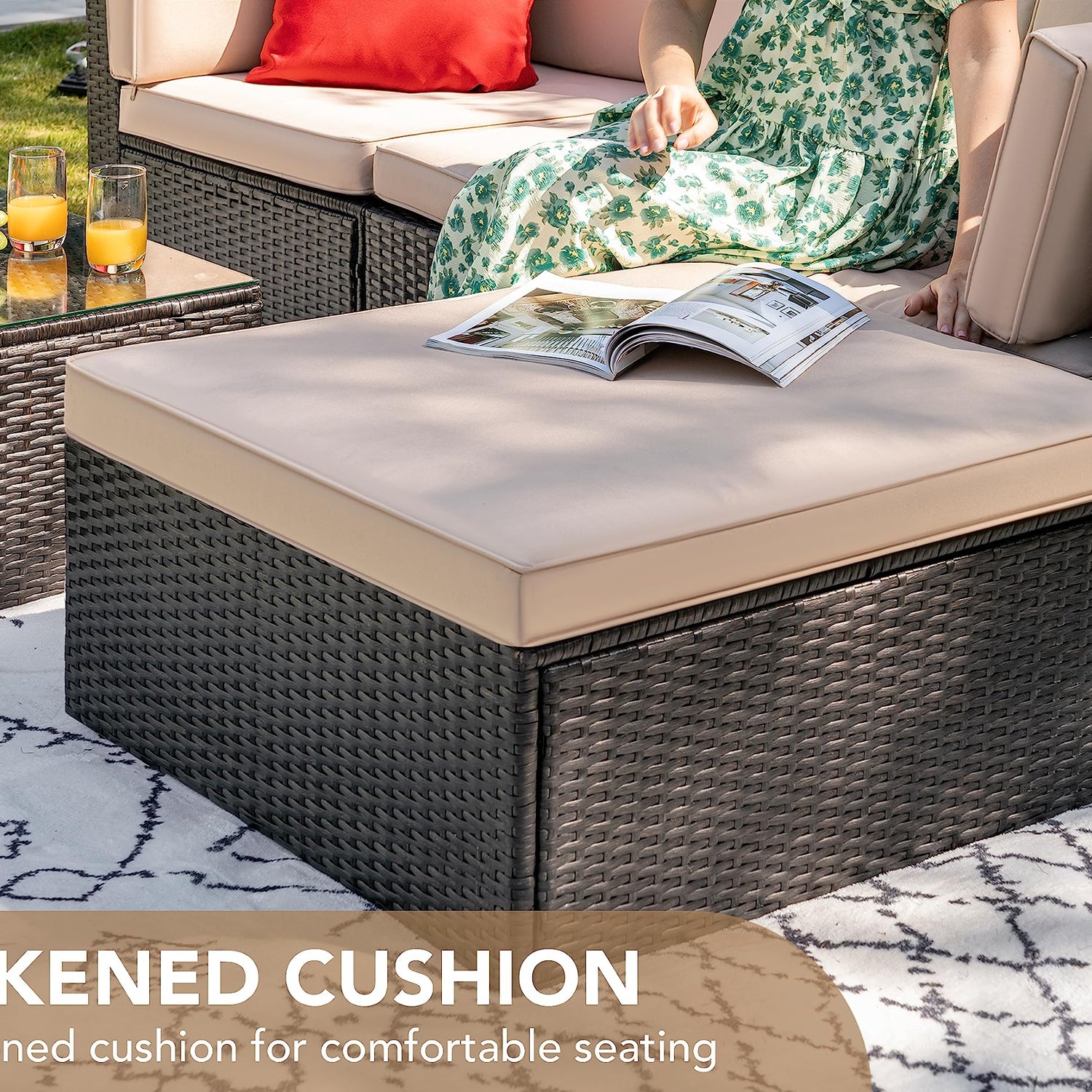 - Sturdy & Durabce: This outdoor sectional patio sofa sets with solid frame, high quality PE wicker are strong enough to withstand all weather variations. Thickened water resistant durable cushions and tempered glass are easy to clean.