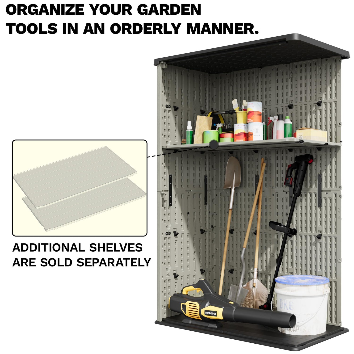 Devoko 50 cu.ft Outdoor Storage Cabinet - Vertical Resin Storage Shed - Holds Patio Furniture, Pool Toys, Garden Tools (Beige) Shelf Not Included