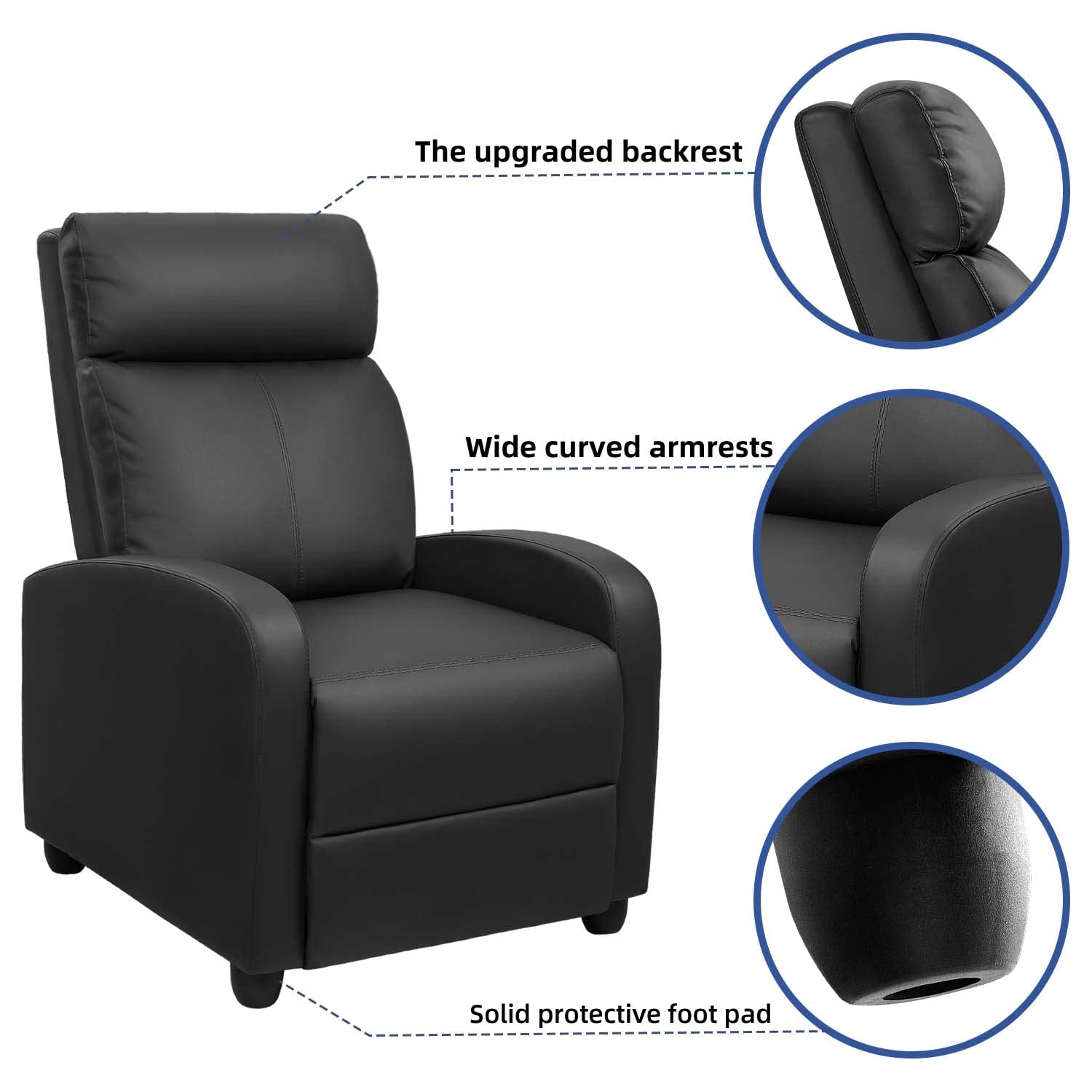 Devoko Massage Recliner Chair Home Theater Seating Pu Leather Modern Living Room Chair Furniture with Padded Cushion Reclining Sofa Chairs (Black)