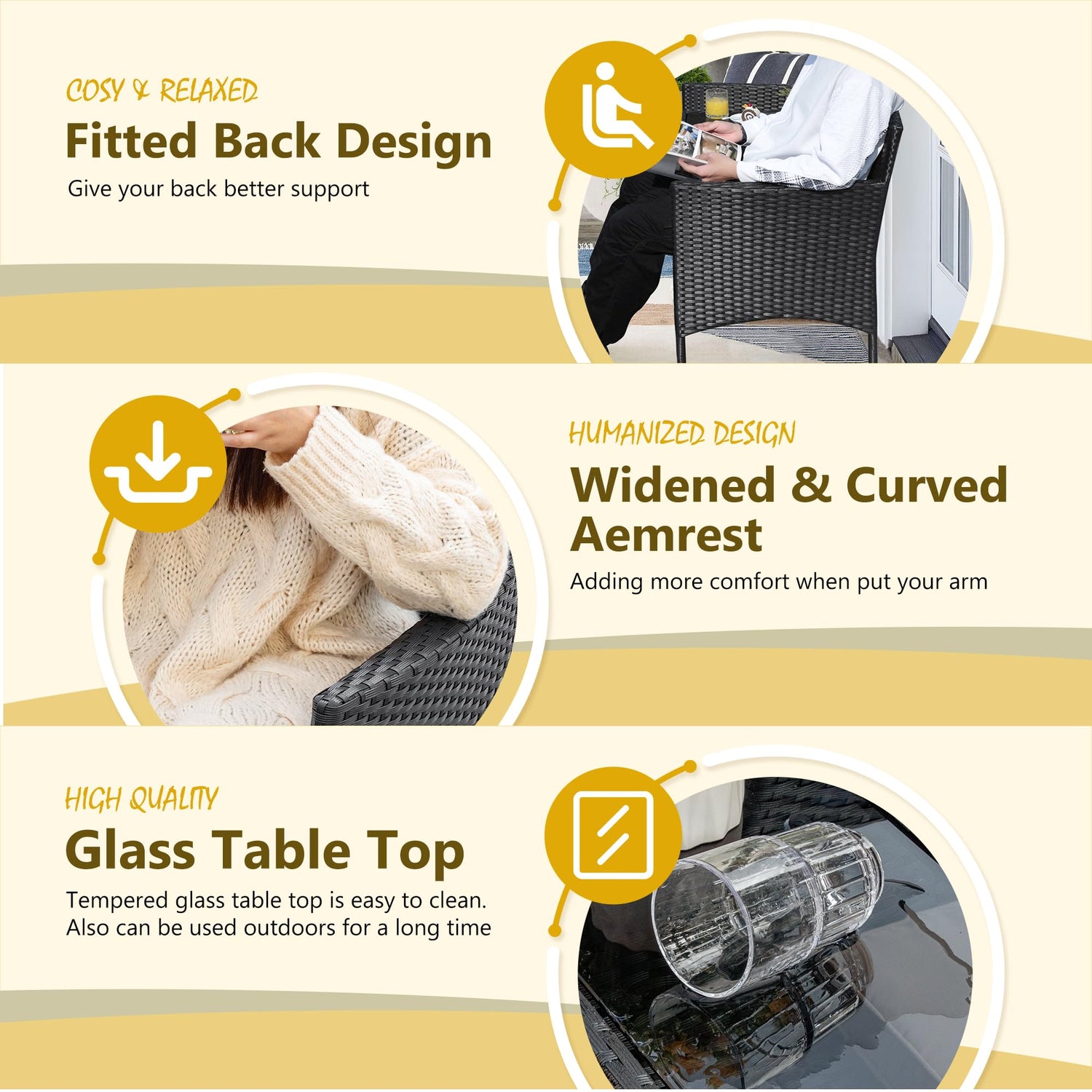 - Sturdy & Durable Construction: Outer frame is made of all-weather resistant and chemical resistant PE rattan, which helps to slow fading and increase durability. Powder-coated steel can prevent itself from rusting while increasing the stability. Each seat is built to withstand 335lb and the coffee table can bear 65lb.