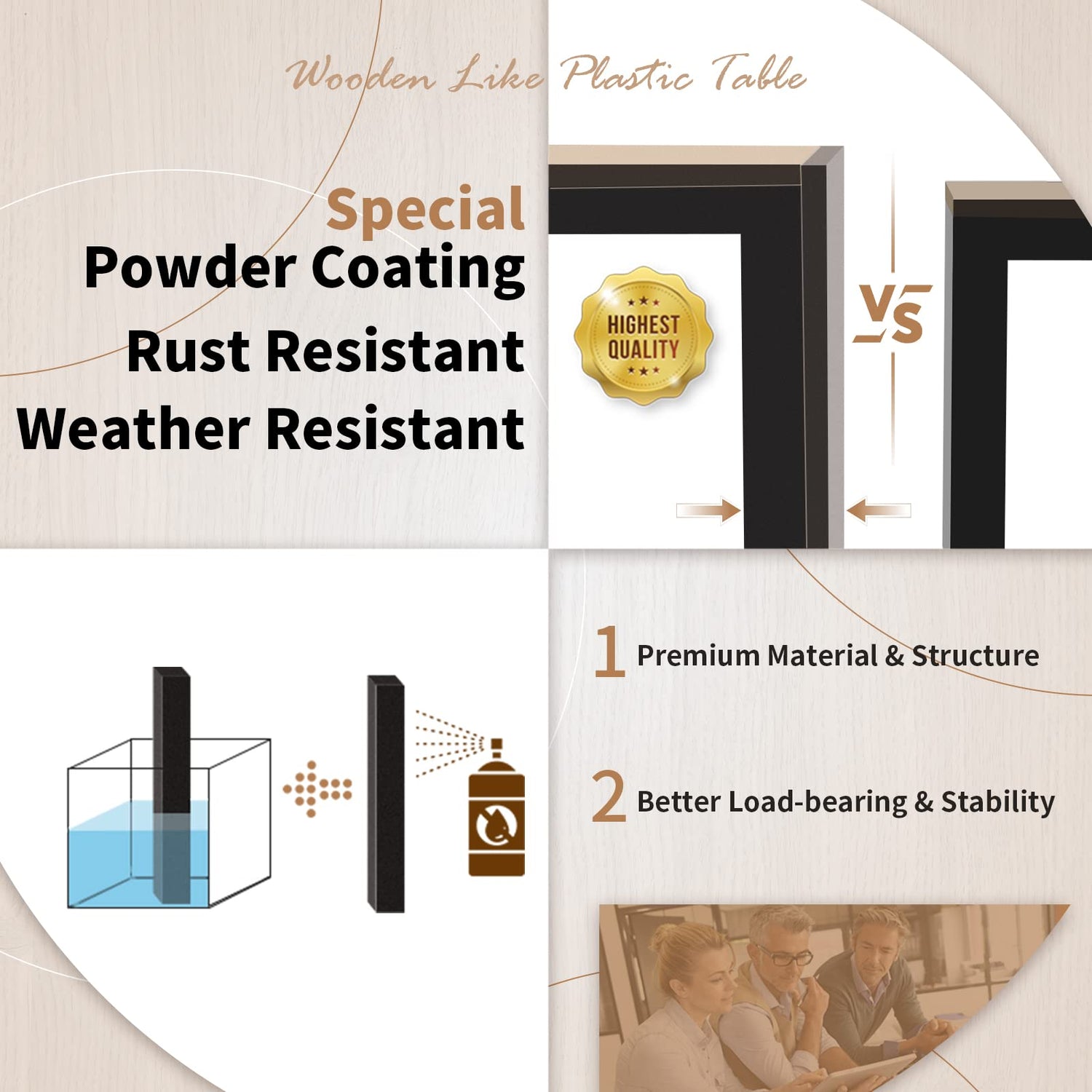 - 【Powder-Coated Steel】 Build of high strength steel and double-layer structure, the frame of this outdoor dining table can provide extra stability and weight capacity. Covered with special powder coating, it feathers weather-resistant and corrosion-resistant.