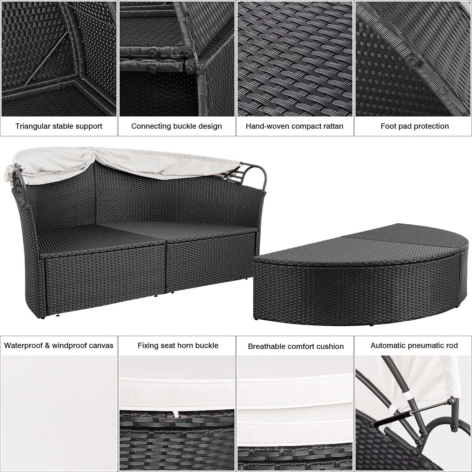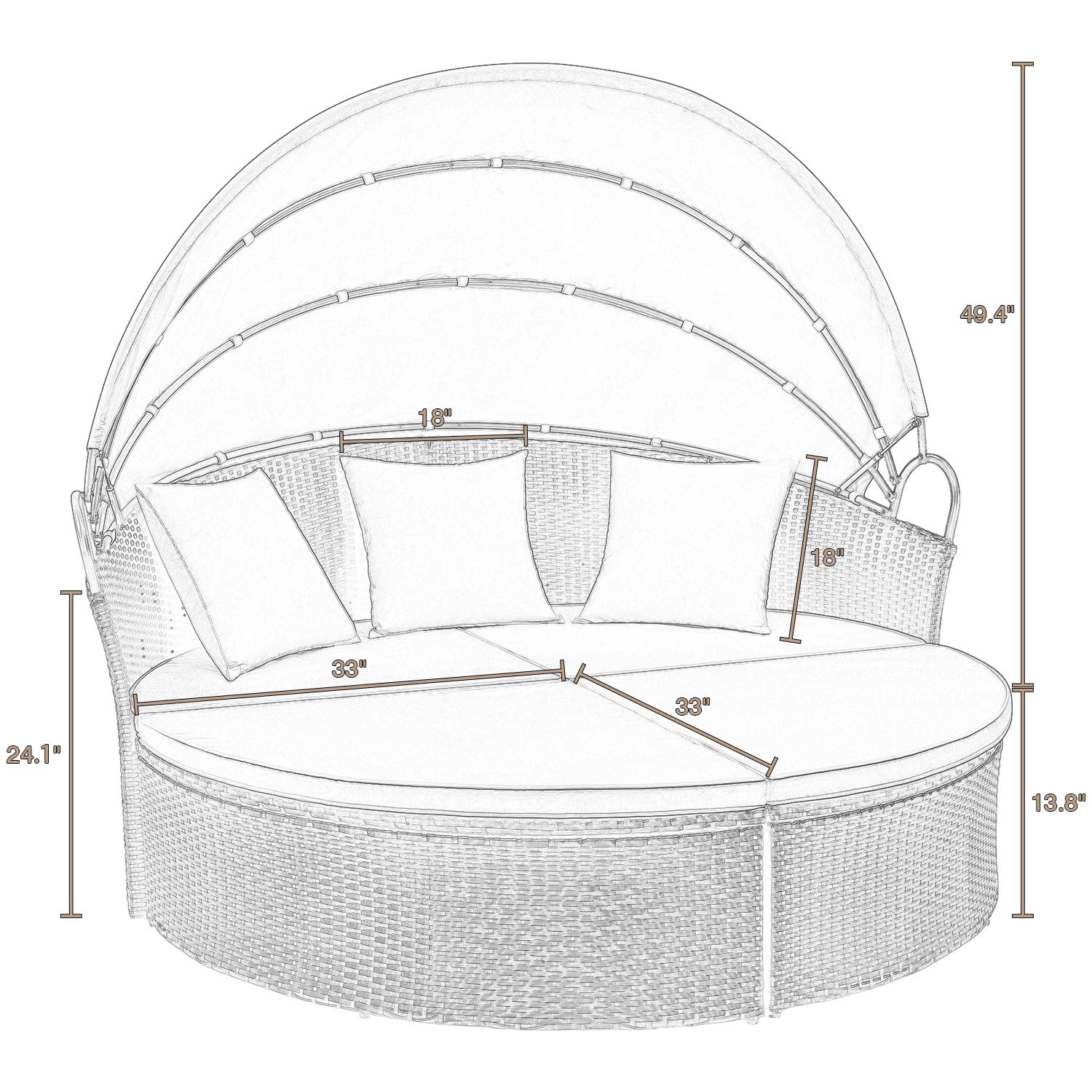Devoko Patio Furniture Outdoor Round Daybed with Retractable Canopy Wicker Rattan Separated Seating Sectional Sofa for Patio Lawn Garden Backyard Porch
