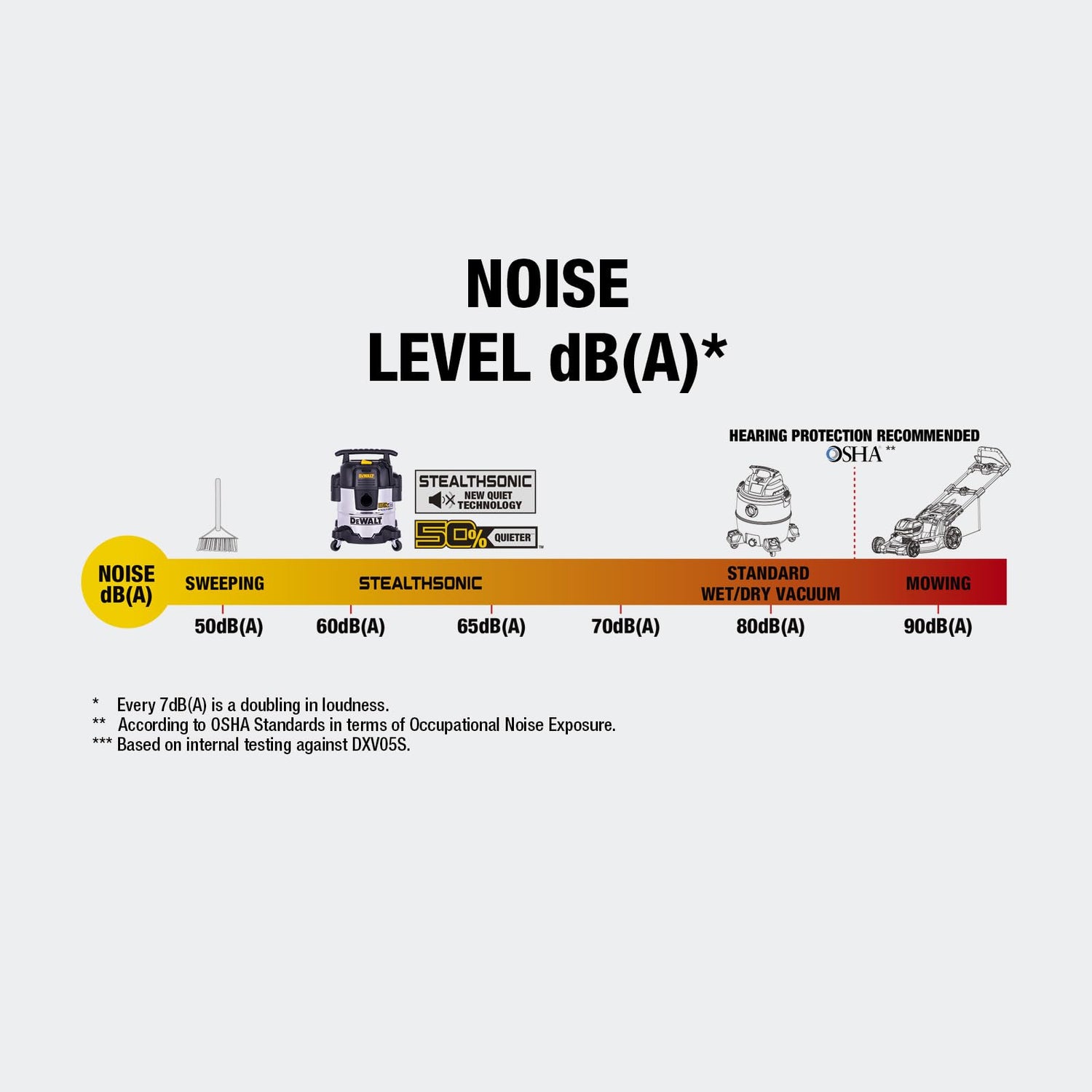 DEWALT 5 Gal Stealthsonic Shop Vacuum Wet and Dry, Ultra-Quiet Stainless Steel Shop Vac, 4 HP Heavy-Duty Vacuum Cleaner with Complete Accessory Kit and 6 Dust Bages for Home, Workshop, Garage, Car