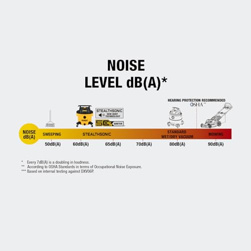 - 【Innovative Quiet Technology】The DEWALT STEALTHSONIC wet dry vacuum cleaner has a powerful quiet motor that delivers powerful suction and airflow to clean the toughest wet and dry debris, while being 50% quieter and 3.0X longer lifetime than the current model.
