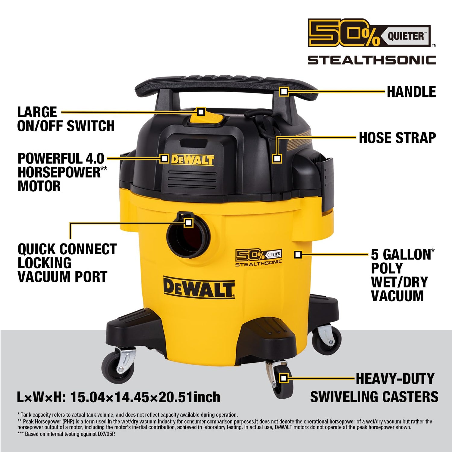 DEWALT Stealthsonic Shop Vacuum Wet and Dry, 5 Gal 4 HP Ultra-Quiet Vacuum Cleaner with Complete Accessory Kit and 6 Bonus Dust Bages - Ideal for Home, Jobsite, Workshop, Garage, Car DXV05P-QTA