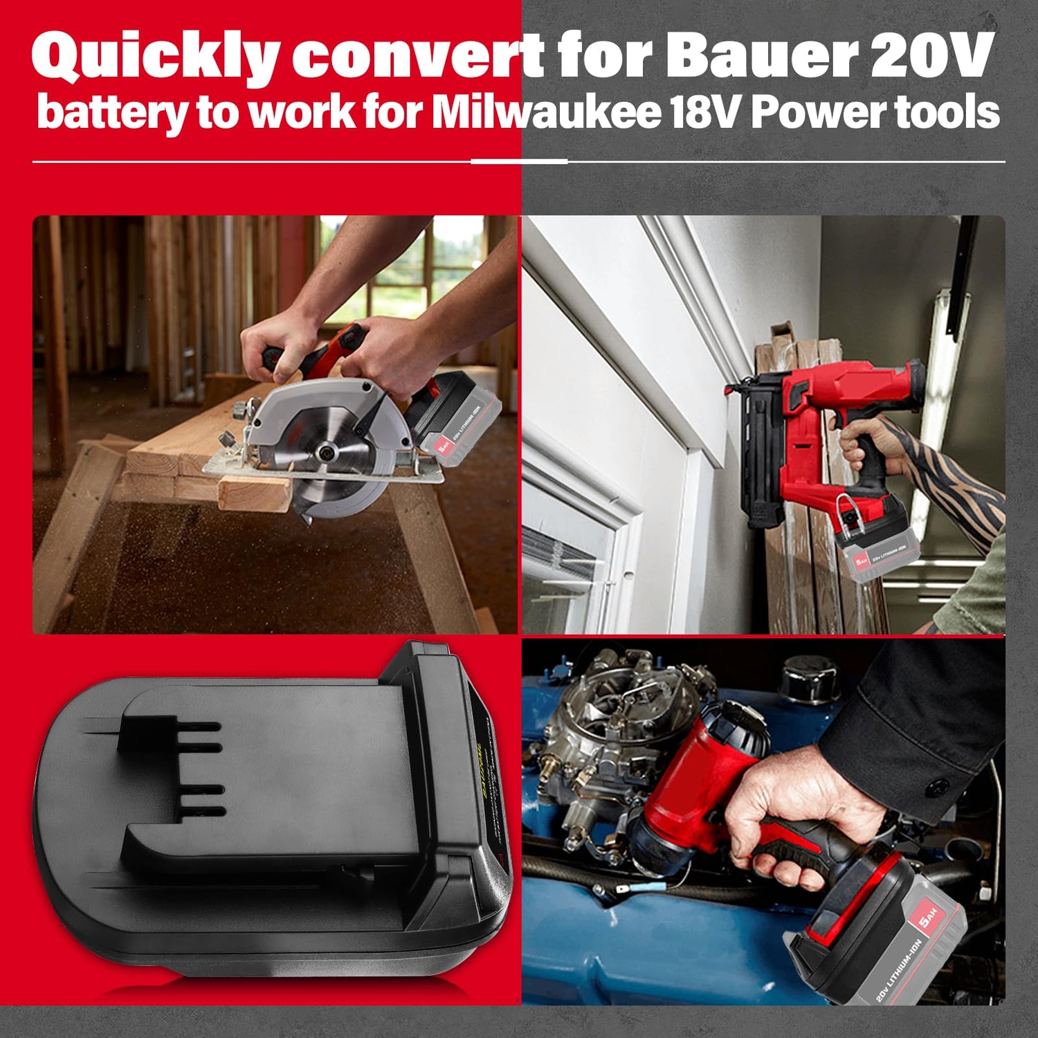 - 💎【Wildly Applicable】 - Convert your Bauer 20 Volt battery,to replace for Milwaukee M18 18V battery, such as 48-11-1862 48-59-1880 48-11-1852 48-11-1820 48-11-1822 48-11-1828 48-11-1840 48-11-1841 48-11-1850 48-11-1815 48-11-1812 48-11-1811 48-11-1860 48-11-1890 48-11-10 batteries, etc.