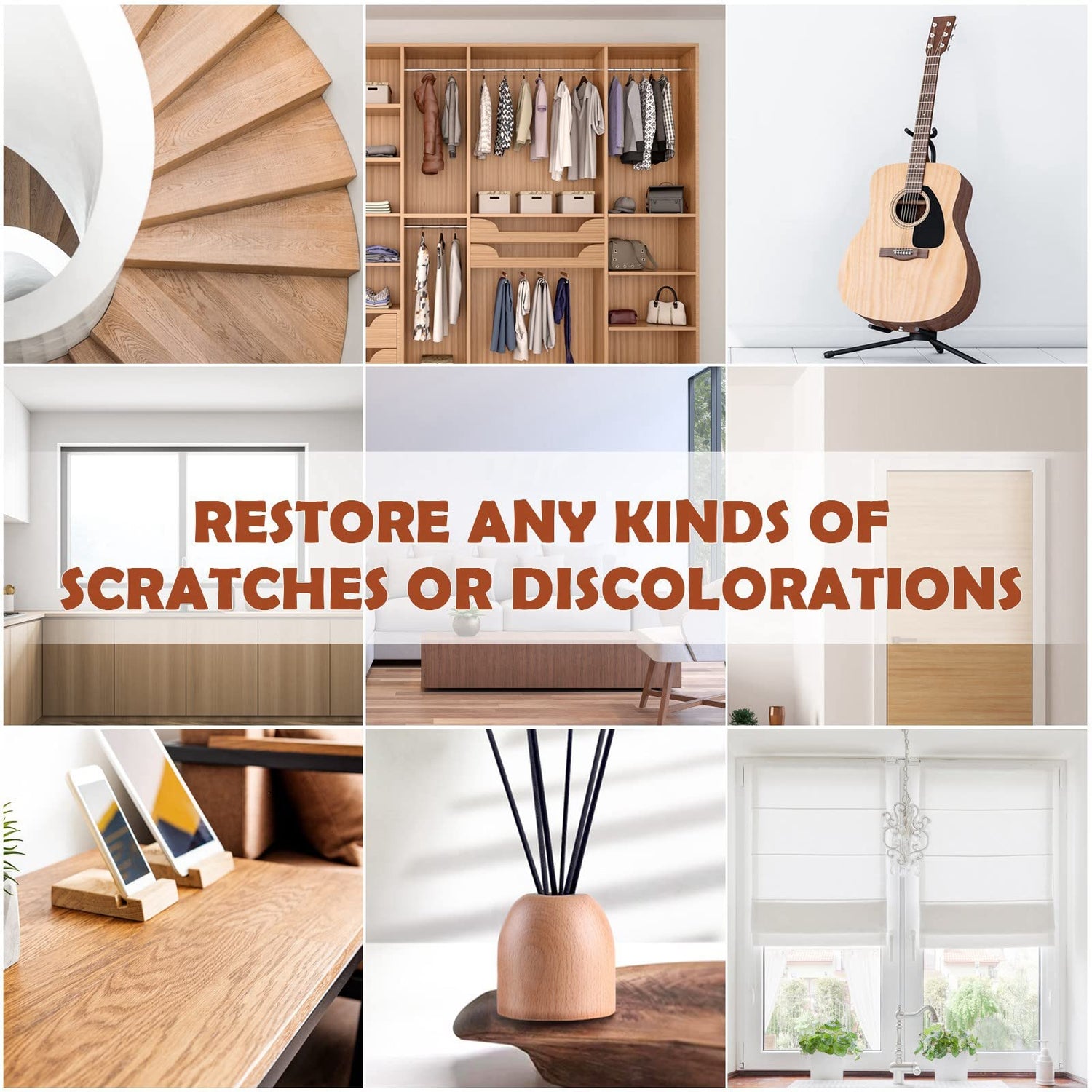 - [Versatile Uses] Our furniture touch-up kit is versatile, capable of repairing scratches, scuffs, cracks, and small holes on wood furniture, floors, cabinets, tables, doors, and more. You no longer need to call a professional for minor furniture touch-ups; become the expert yourself!