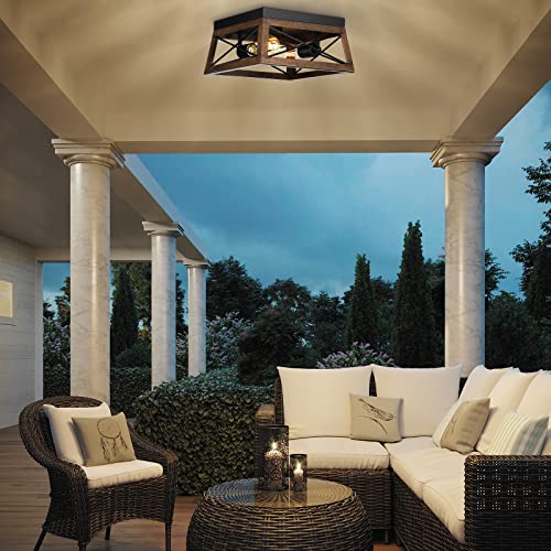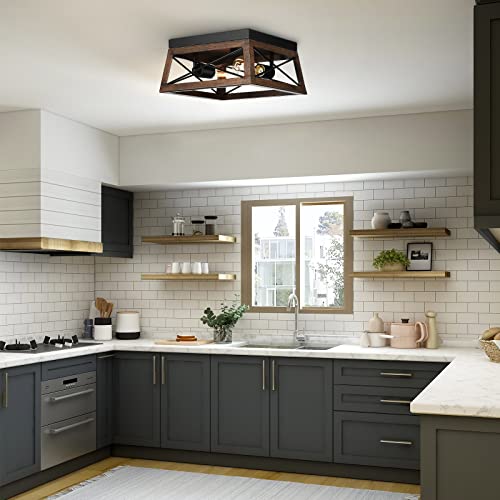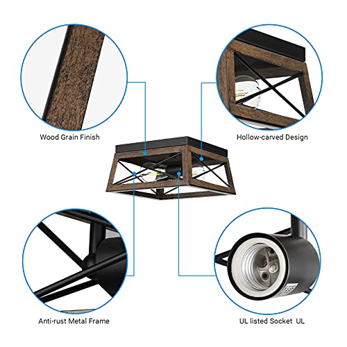 DEWENWILS Farmhouse Ceiling Light Fixture, Metal Flush Mount Ceiling Light with Wood Grain Finish, 2-Lights Ceiling Lamp for for Hallway, Entryway, Kitchen, Foyer