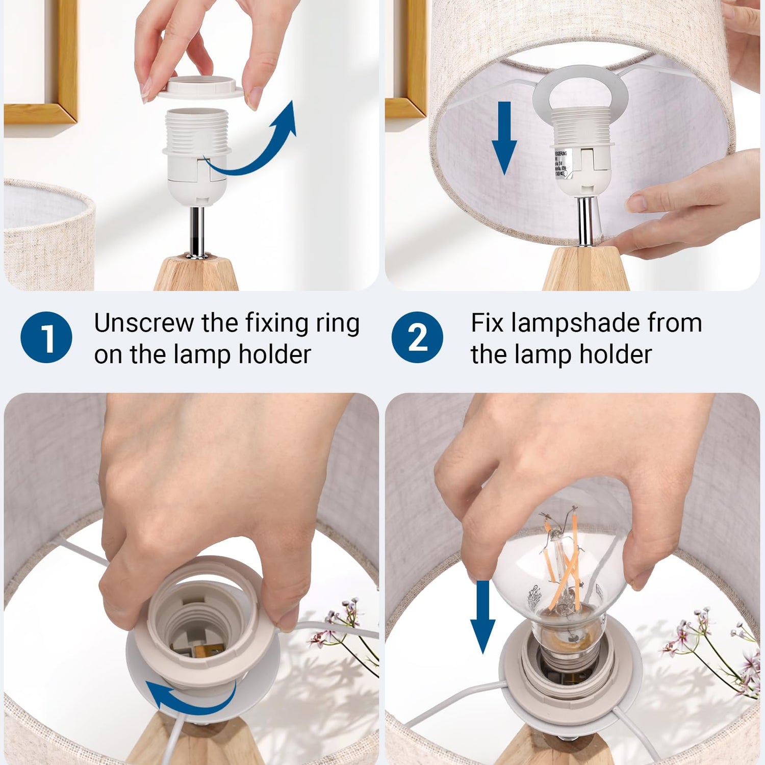 - 【Easy to Assemble】Simple to put the lamp together in minutes, the socket ring will fix shade tightly, the switch on the cord make small bedside lamp easy to turn on and off. E26 base fits Incandescent/LED/CFL/Halogen Bulb (Bulb not included)