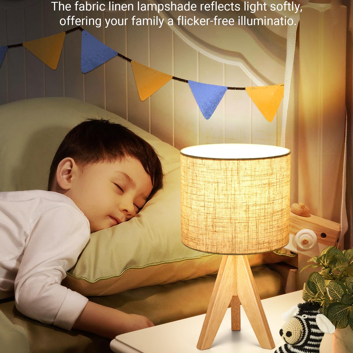 - 【Sturdy & Compact】With the tripod wood base, nursery lamp is sturdy on its feet, not tipped over easily. Small table lamp takes not mush space, perfectly fit for nightstand, side table, bedside table, nursery room