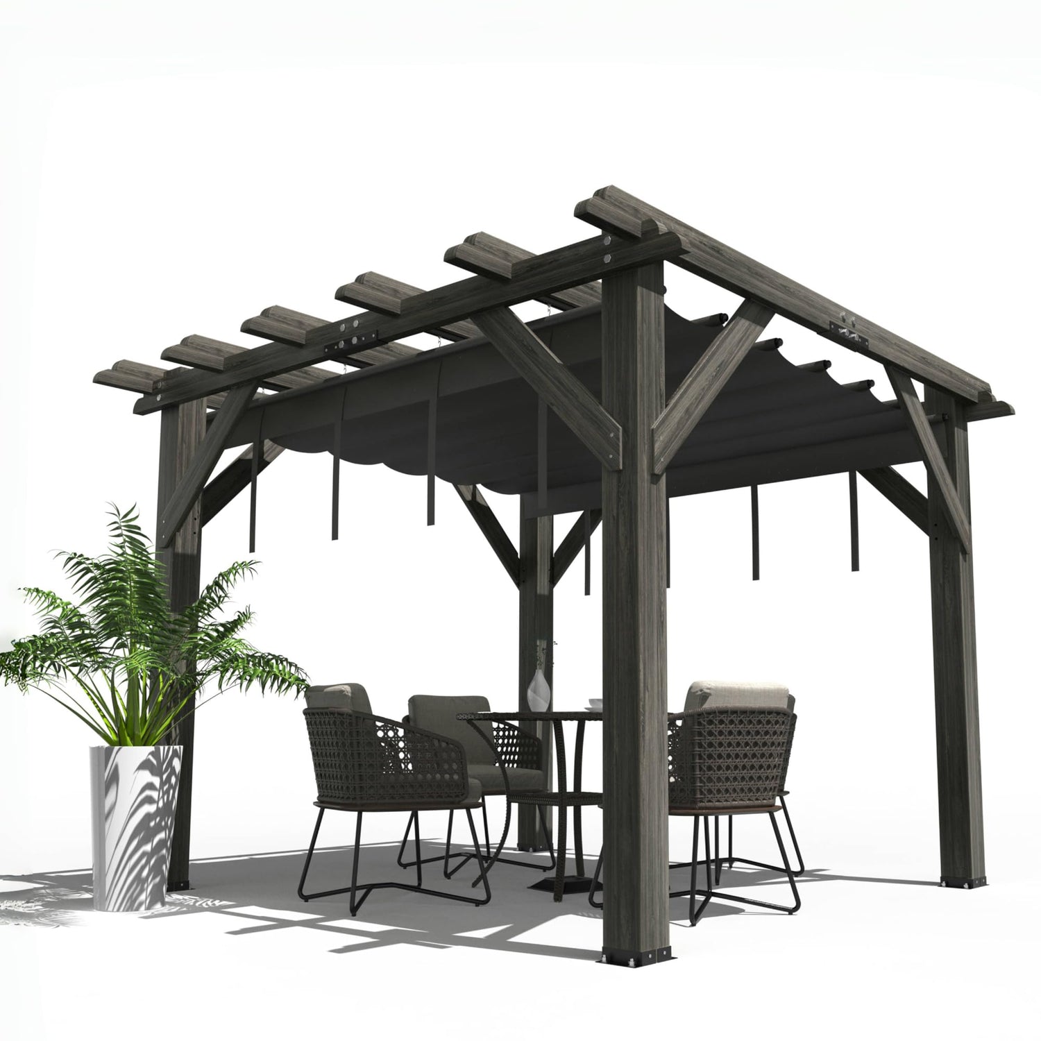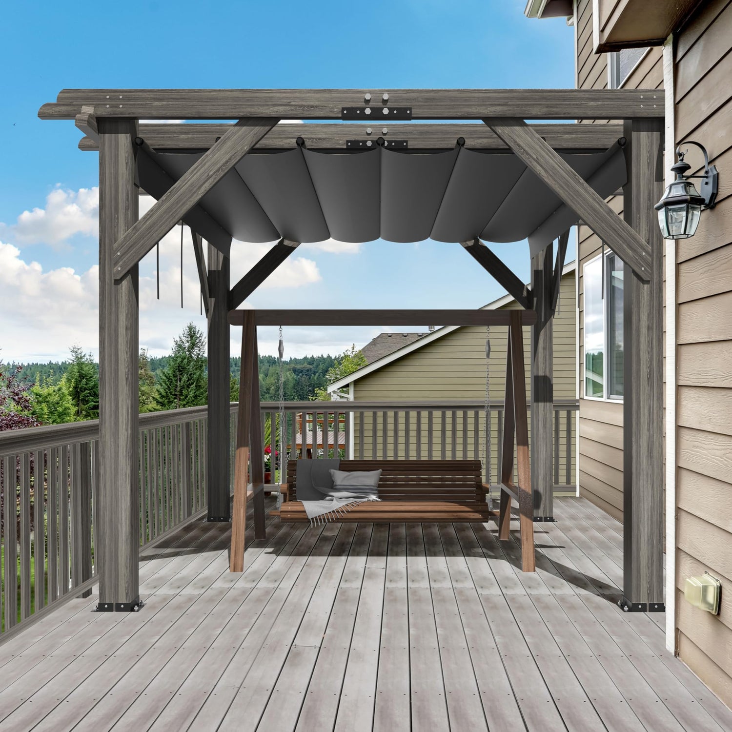 DEXSO 10'X 10' Cedar Wood Pergola with Solid Structure, Retractable Shade Canopy, Durable, Rot Resistant, Patio Pergola for Backyard, Deck, Garden, Outdoor Entertaining