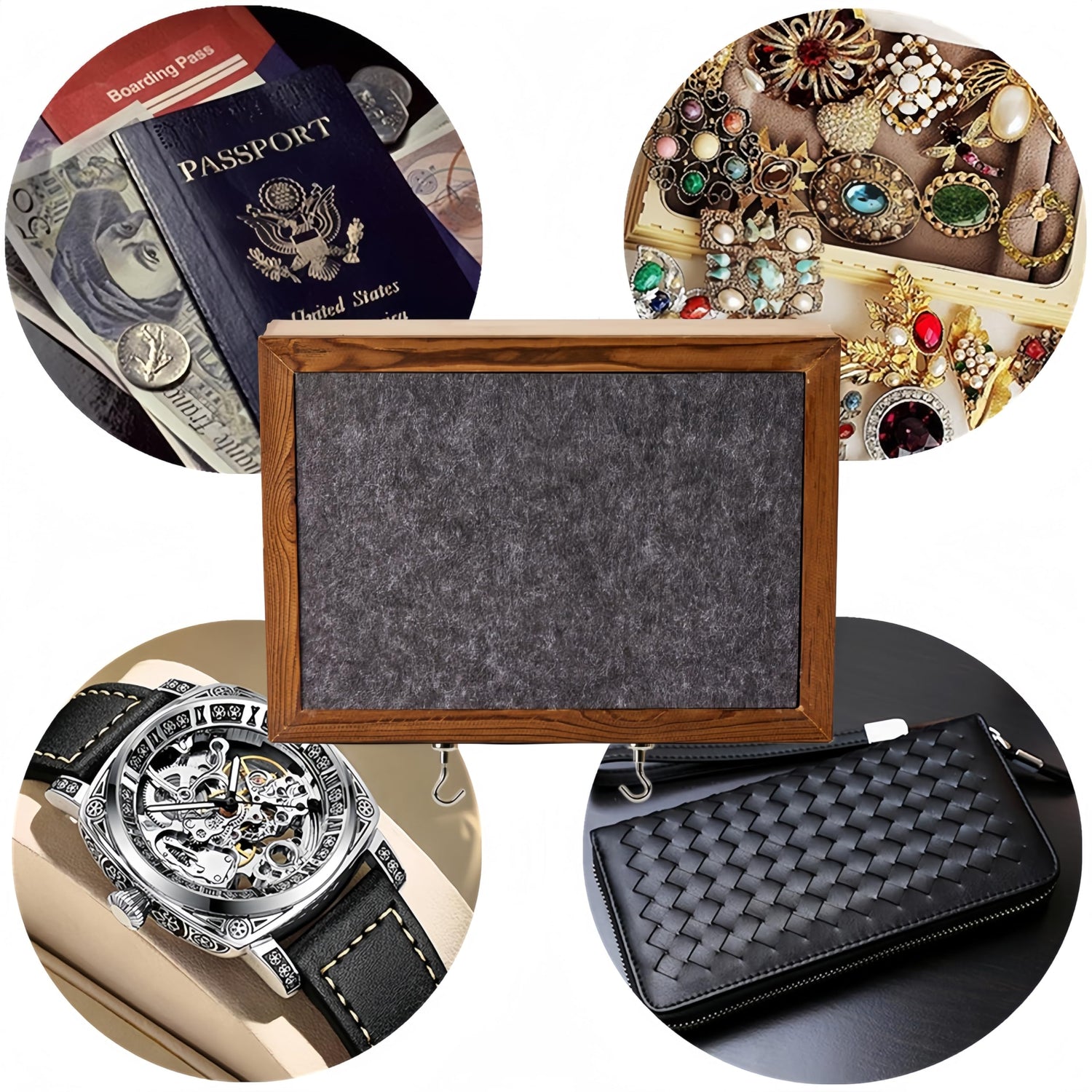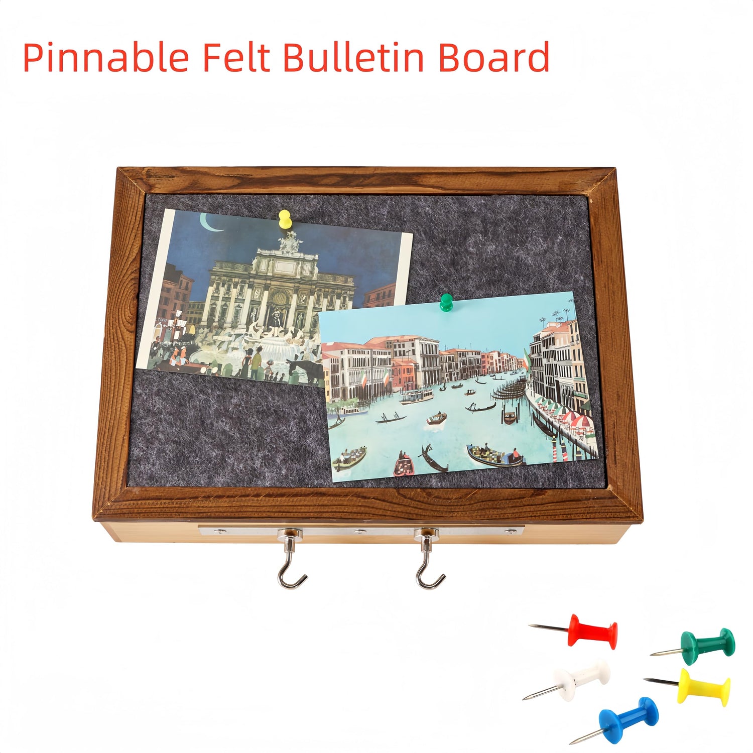 - PINNABLE FELT BULLETIN BOARD. High density strong self-healing felt top layer within wood frame, the board can be used for a long time without any hole. Perfect home decor to pin photos, cards, calendars, messages, notes at home and in office. 8 push pins in the package.