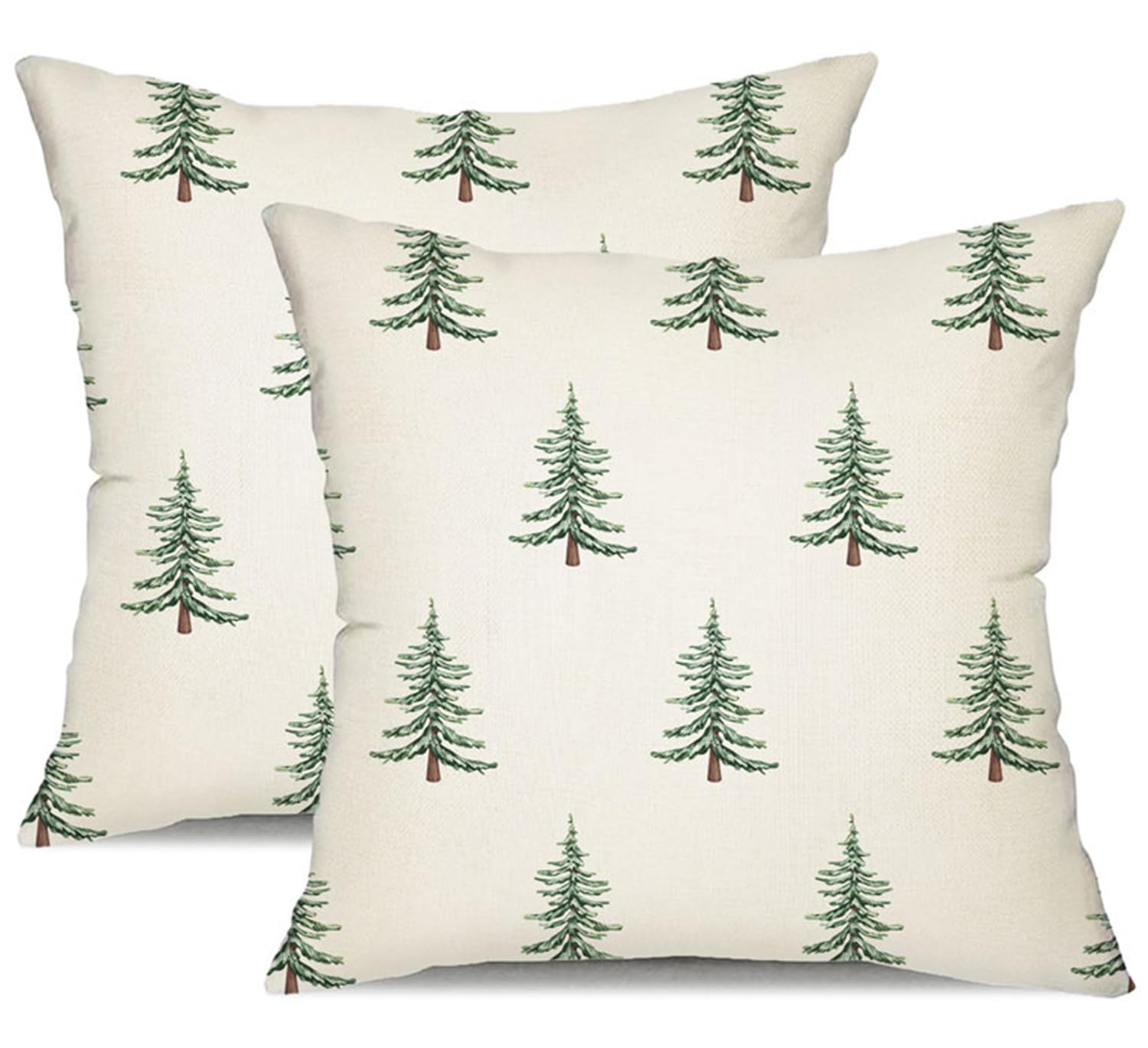 DFXSZ Christmas Pillow Covers 18x18 inch Set of 2 Christmas Tree Decorative White Throw Pillow Covers Winter Famliy Decoration for Home Couch TH-30B18