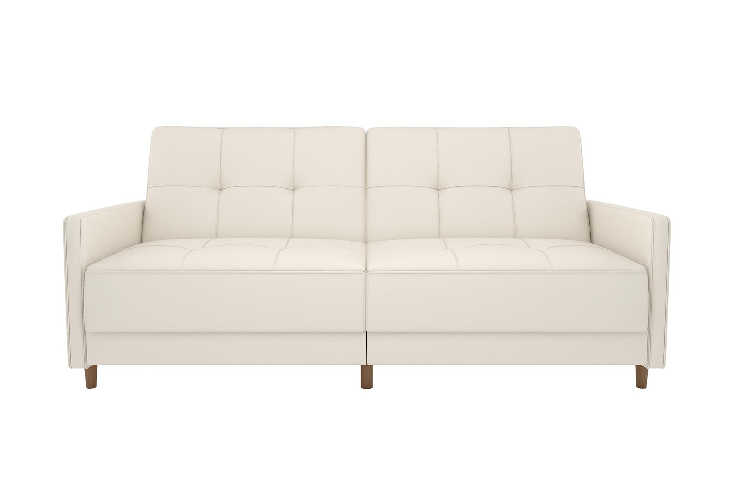 DHP Andora 76 Inch Futon Sofa Bed in Faux Leather, Modern Upholstered Couch Sleeper with Button Tufted Back and Seat, White