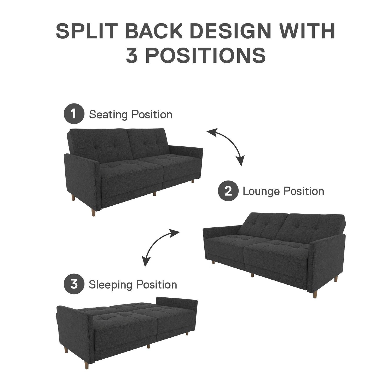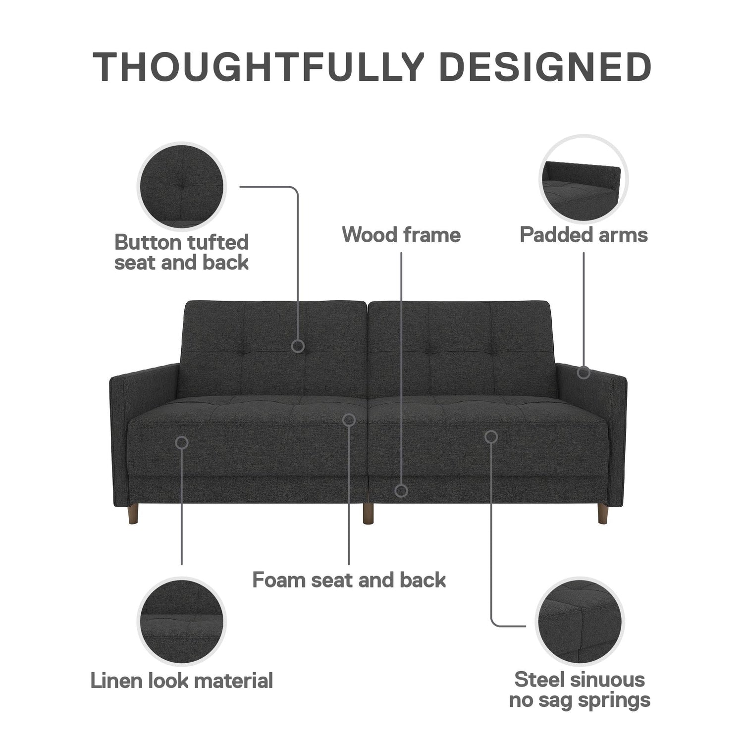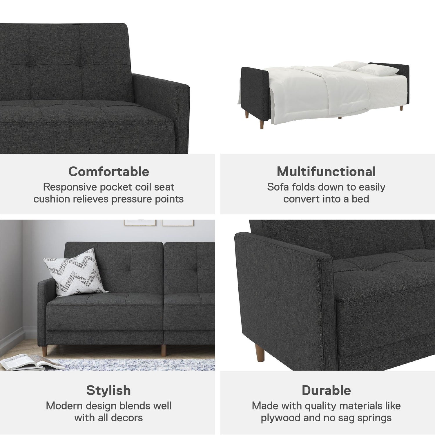 DHP Andora 76 Inch Futon Sofa Bed, Modern Upholstered Couch Sleeper with Button Tufted Back and Seat, Grey