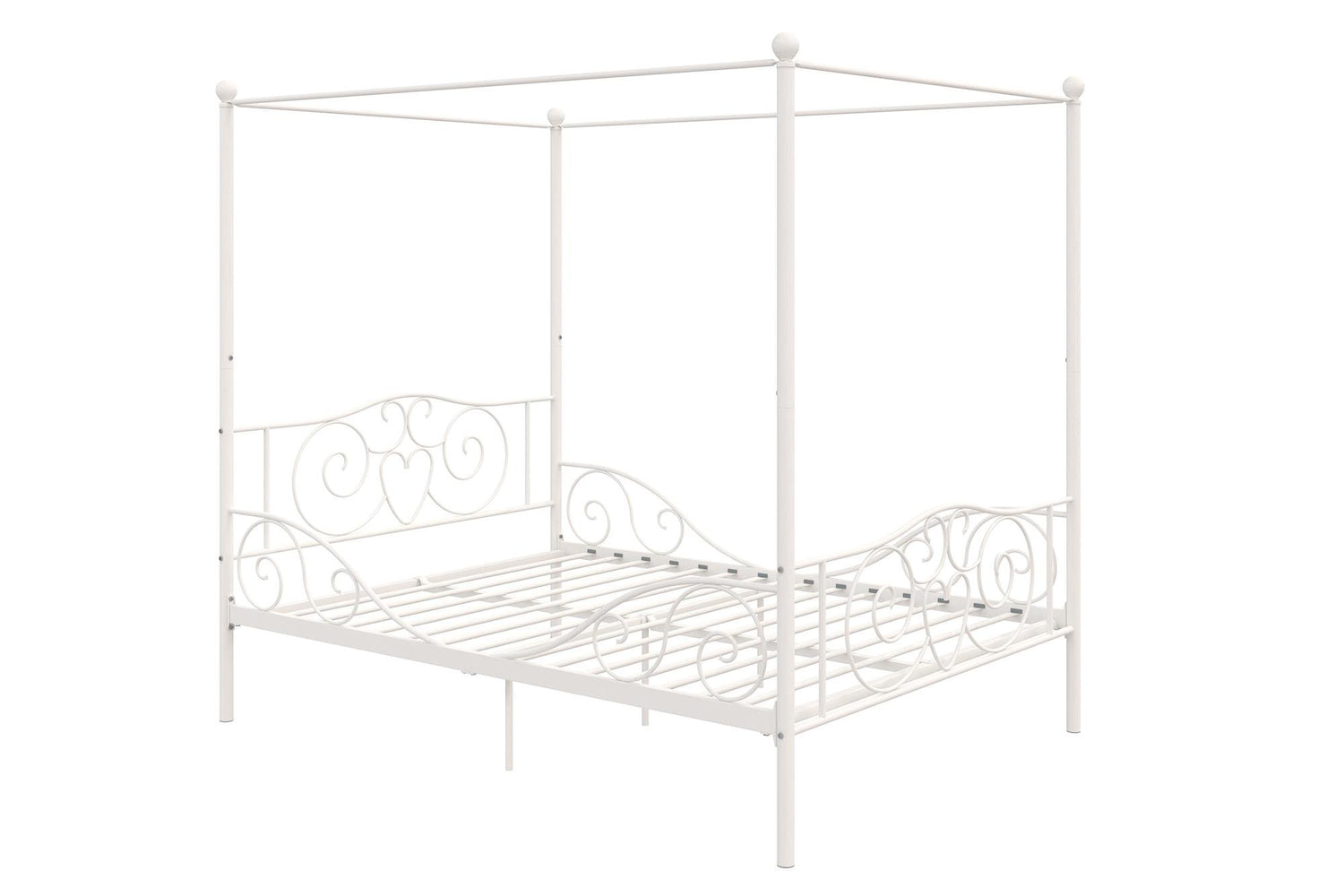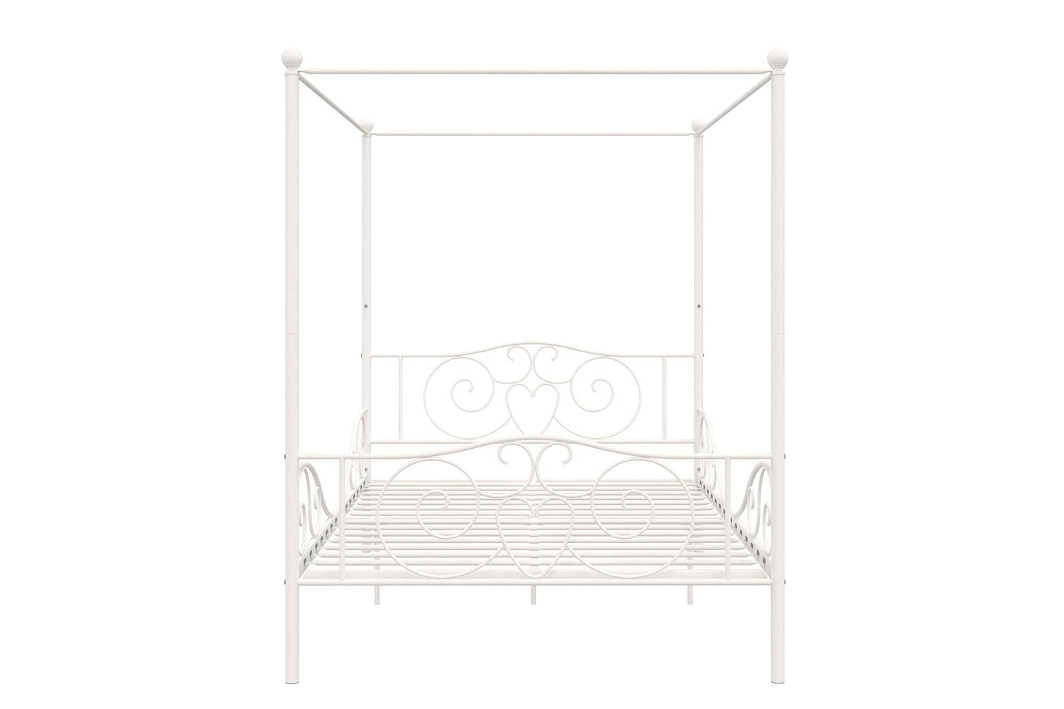 DHP Metal Canopy Bed Frame - Full Size, White with Heart Scroll Design