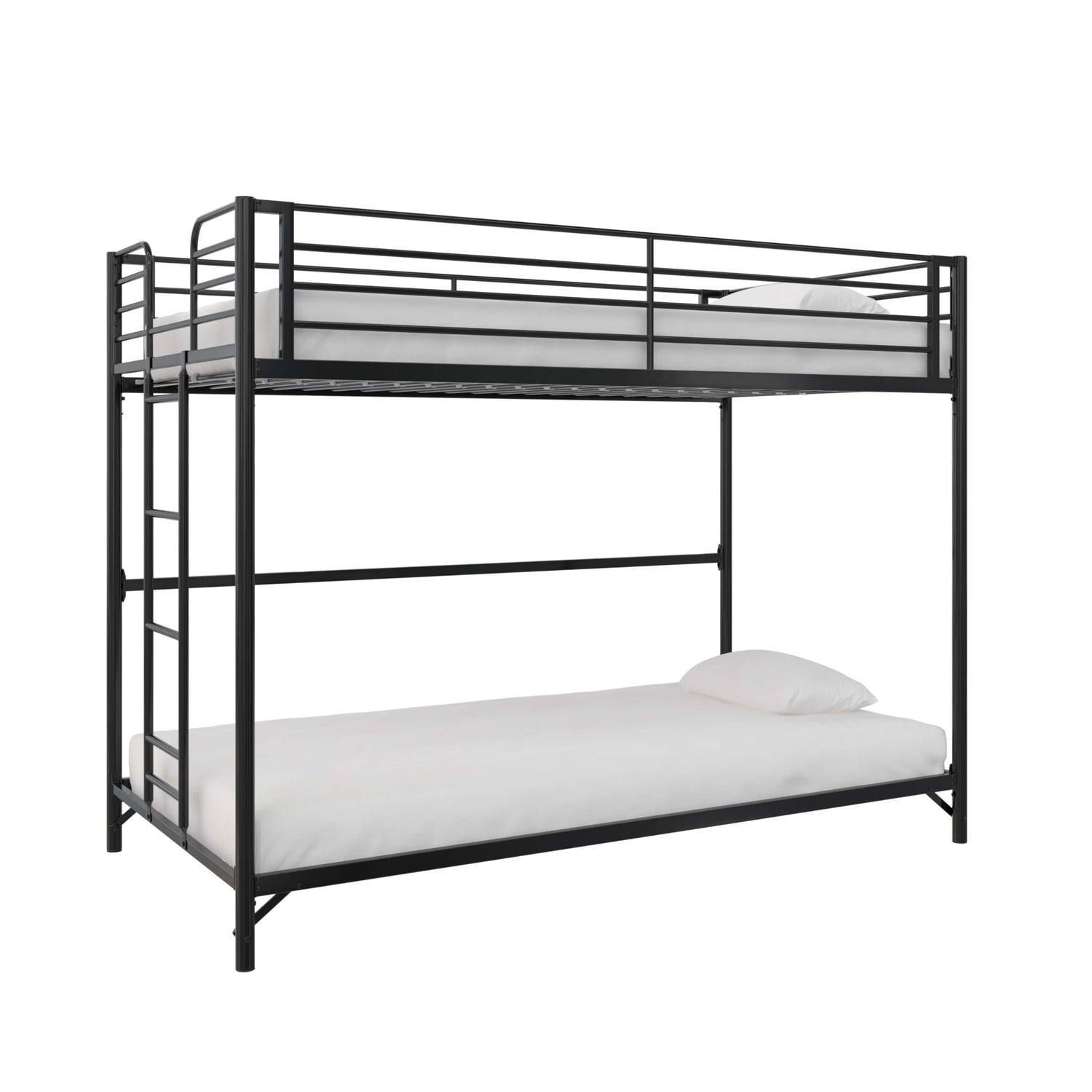 Details: We totally get it - you don't have the time or patience anymore to assemble furniture that comes with crazy long instructions and a bunch of confusing parts. Designed with busy parents in mind, the DHP Daven Easy Assembly Kids Metal Bunk Bed can be put together fast, under an hour in fact, to give your children a safe bedroom staple for comfortable sleep. Its easy lock technology utilizes interconnecting joints and brackets to make assembly feel like a piece of cake. Say goodbye to complex hardware, the Daven only requires 14 screws and an Allen key (all included) for stress free installation. And if you're ever on the move, this bunk bed quickly disassembles for easy transport and includes protective plastic capped posts that facilitate transfer from one room to another without scratching hardwood floors. Made with a solid metal frame, the durable Daven sports modern clean-edged lines with safety and support features such as an integrated easy climb ladder, full-length upper bunk guardrails, and mattress reinforcing steel slats. Available in Twin over Twin and Twin over Full size, make life a whole lot easier with the Daven. Mattresses sold separately.
