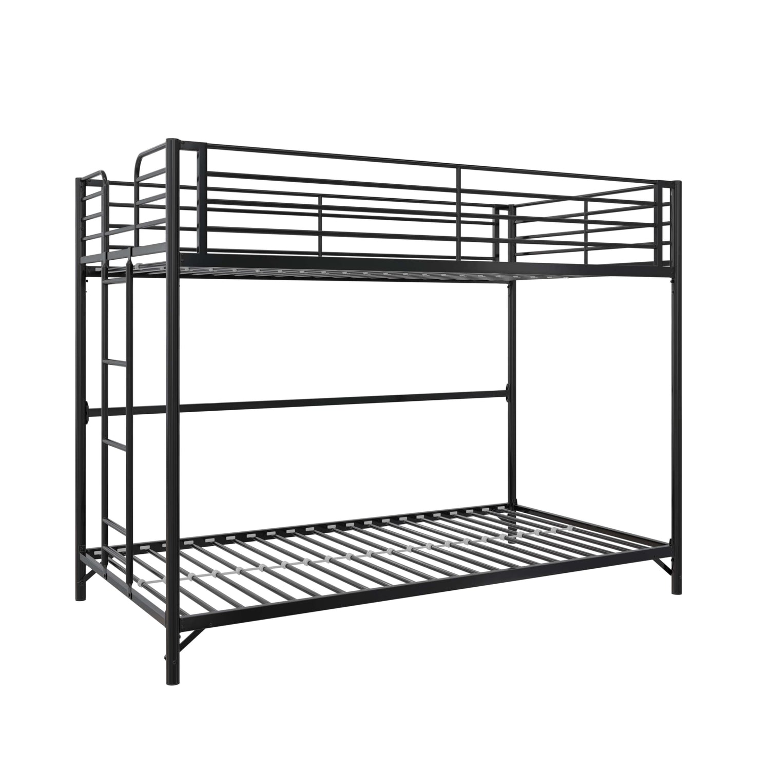 DHP Daven Easy Assembly Metal Bunk Bed for Kids, Teens and Adults, with Ladder, High Guardrail, Metal Slats, Smooth Rounded Edges, No Boxspring Required, Twin-Over-Twin, Black