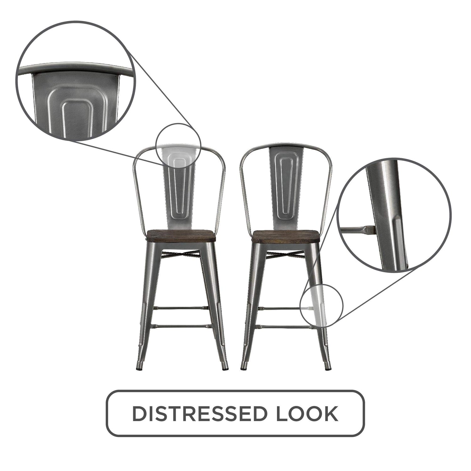 Details: The Luxor 24" Metal Counter Stool with a wood seating surface from DHP is highly fashioned with a distressed finish and antique metal design. This urban counter stool is a classic statement piece, making it a perfect dining and conversation seat.