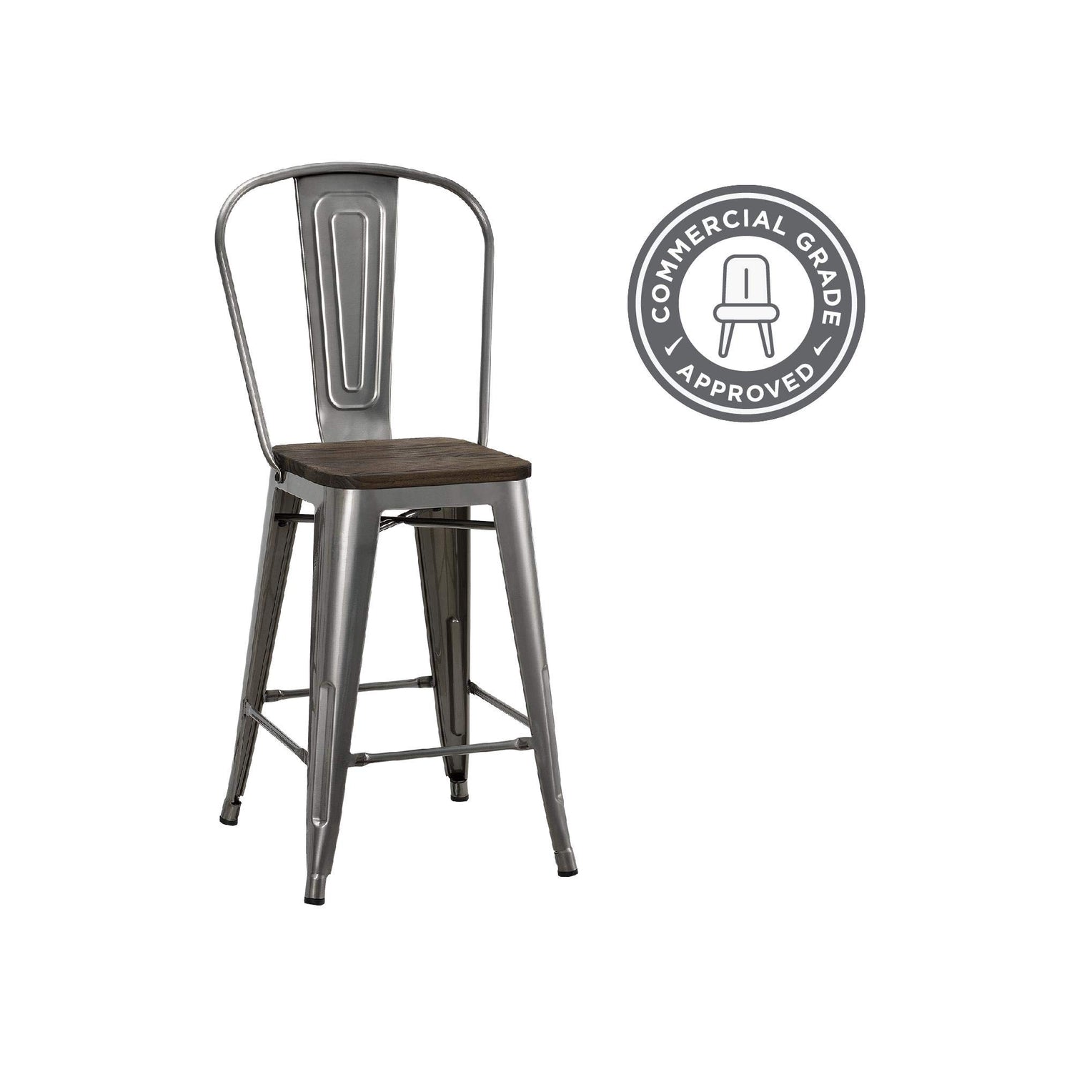 DHP Luxor Counter Stool with Wood Seat and Backrest, 24", Antique Gun Metal
