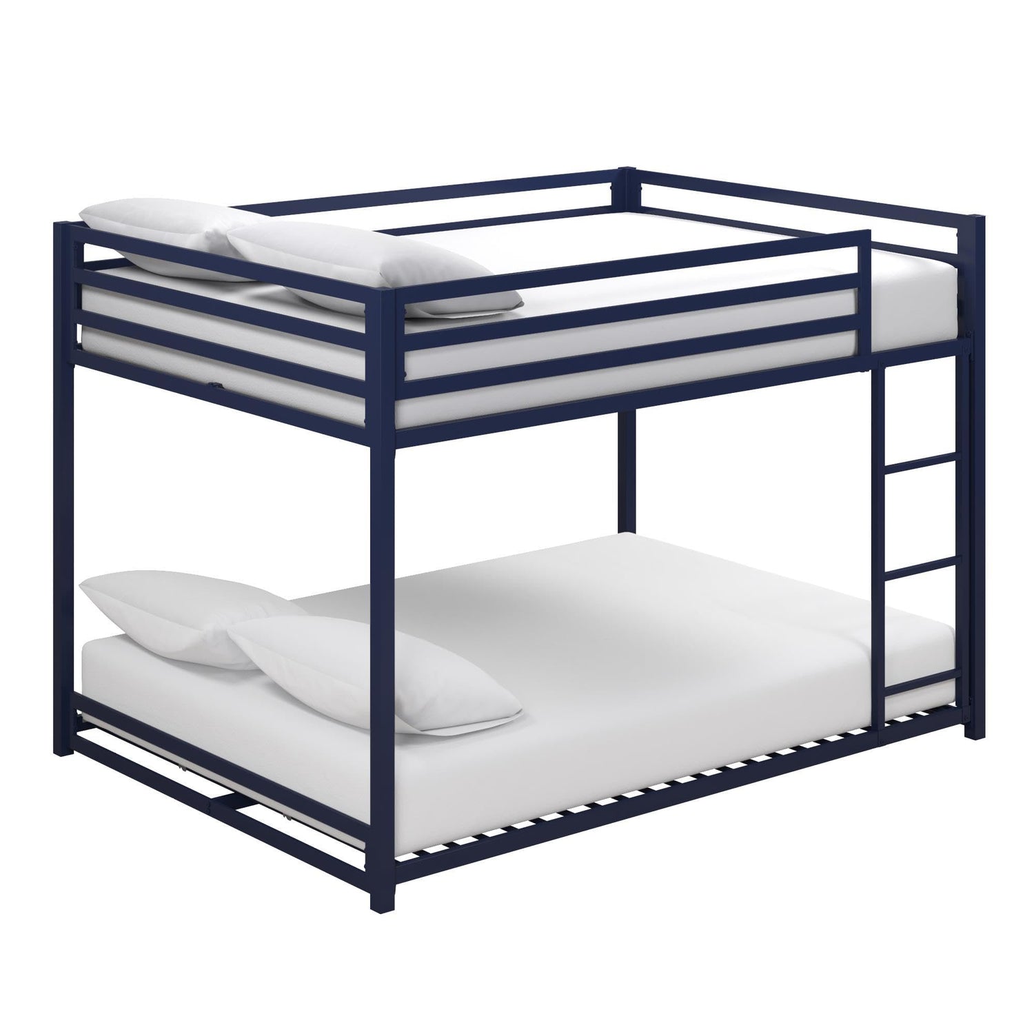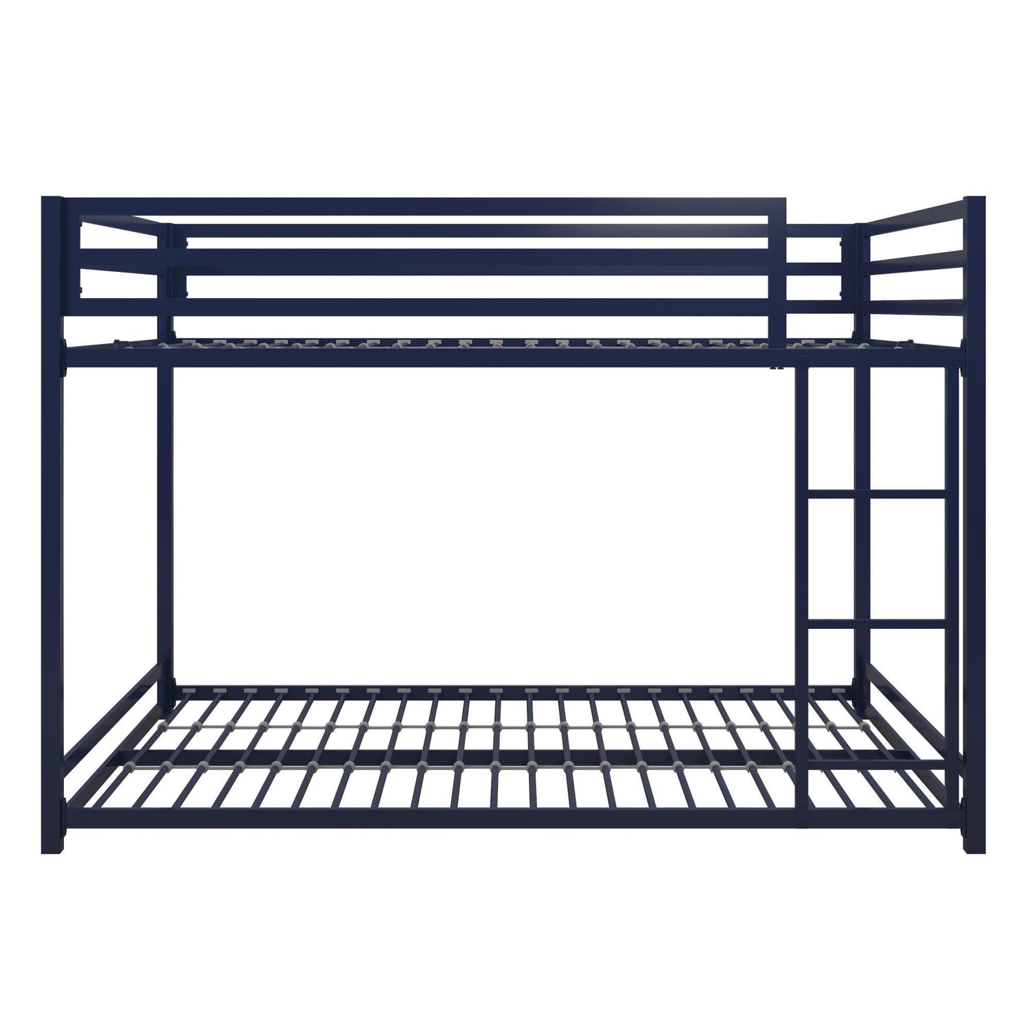 DHP Miles Low Metal Bunk Bed Frame for Kids, With Built-in Ladder, High Guardrail and Metal Slats, Floor Bed Bottom Bunk, No Boxspring Required, For Small Spaces, Full-Over-Full, Blue