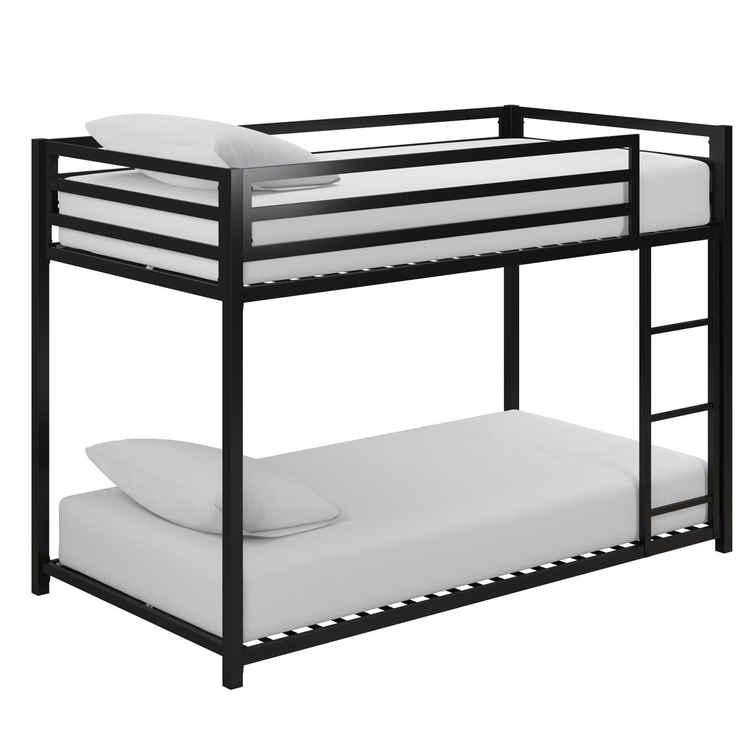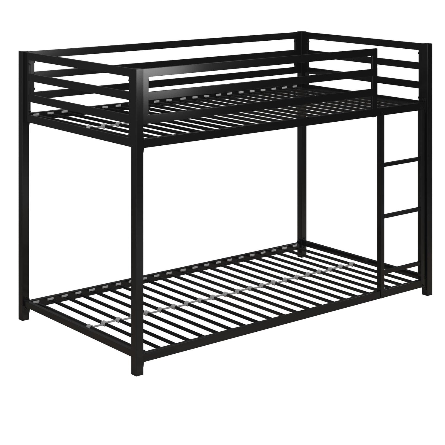 DHP Miles Low Metal Bunk Bed Frame for Kids, With Built-in Ladder, High Guardrail and Metal Slats, Floor Bed Bottom Bunk, No Boxspring Required, For Small Spaces, Twin-Over-Twin, Black
