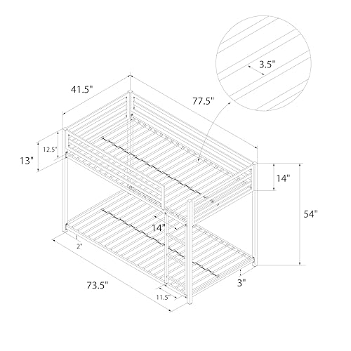 The DHP Miles Bunk Bed accommodates two twin size 6-inch mattresses (sold separately) and with heavy-duty metal slats, there's no need for a box spring. This smart design keeps your mattresses in place, preventing any sliding or movement.