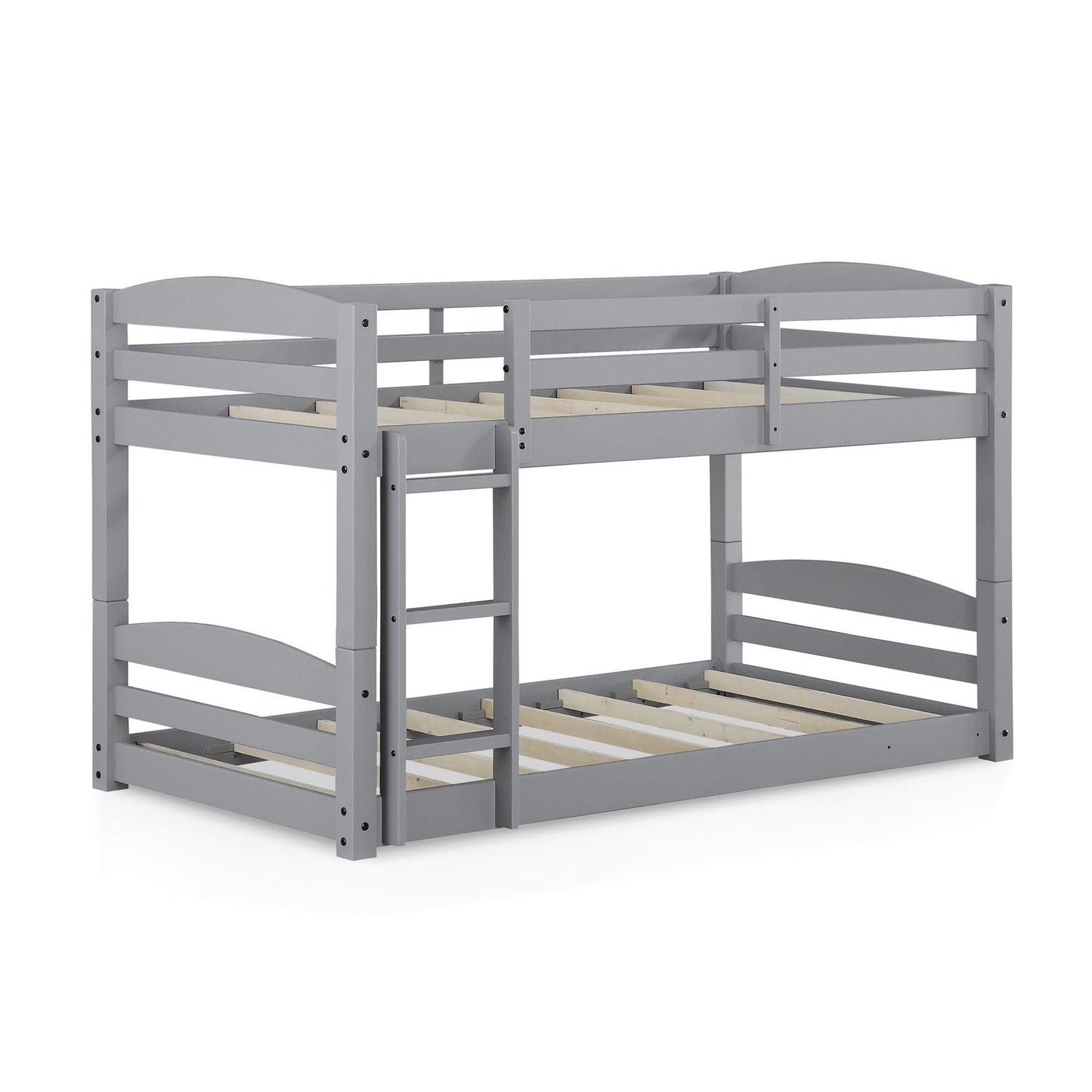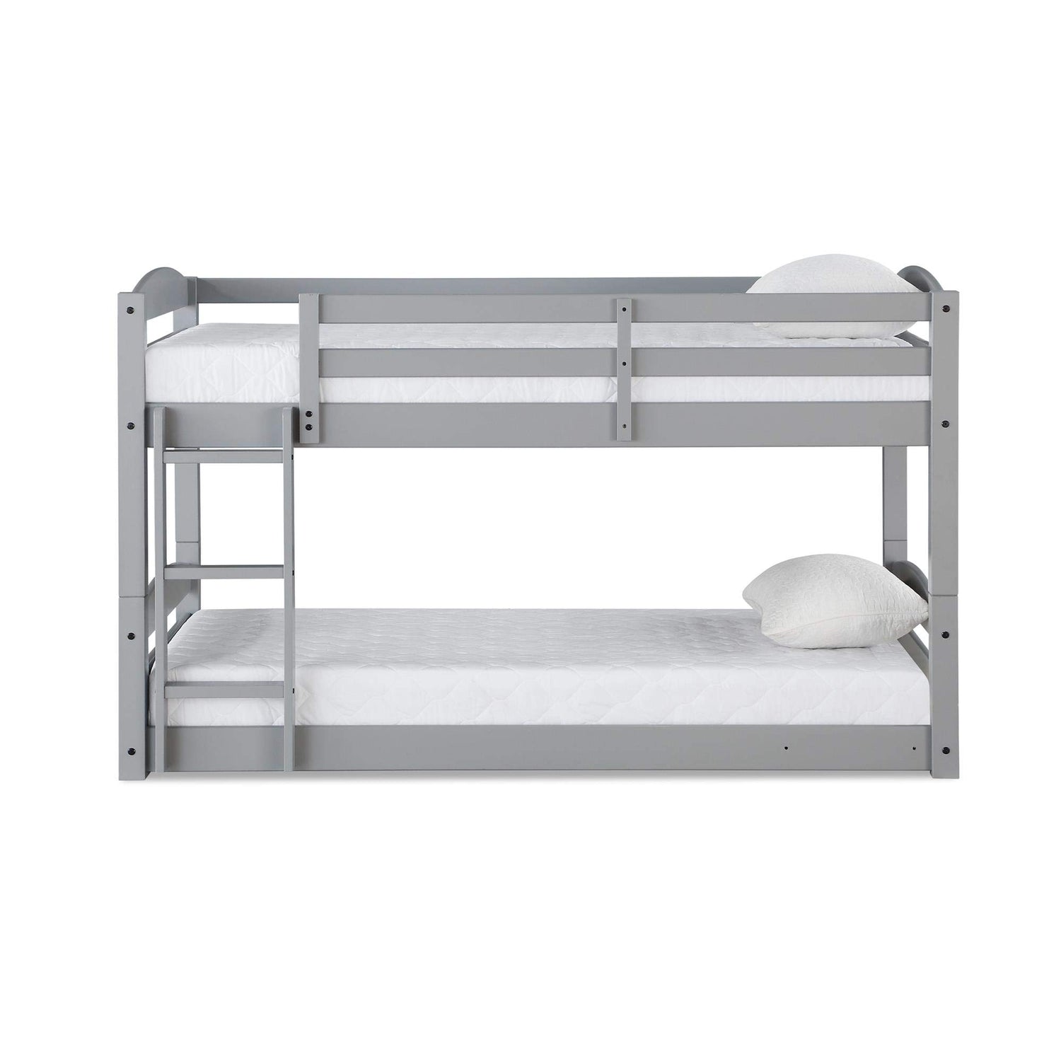 DHP Phoenix Convertible Low Wood Floor Bunk Bed, Stackable and Detachable Bed Frames for Kids, Solid Wood, with Ladder, High Guardrail, Wood Slats, No Boxspring Required, Twin-Over-Twin, Gray