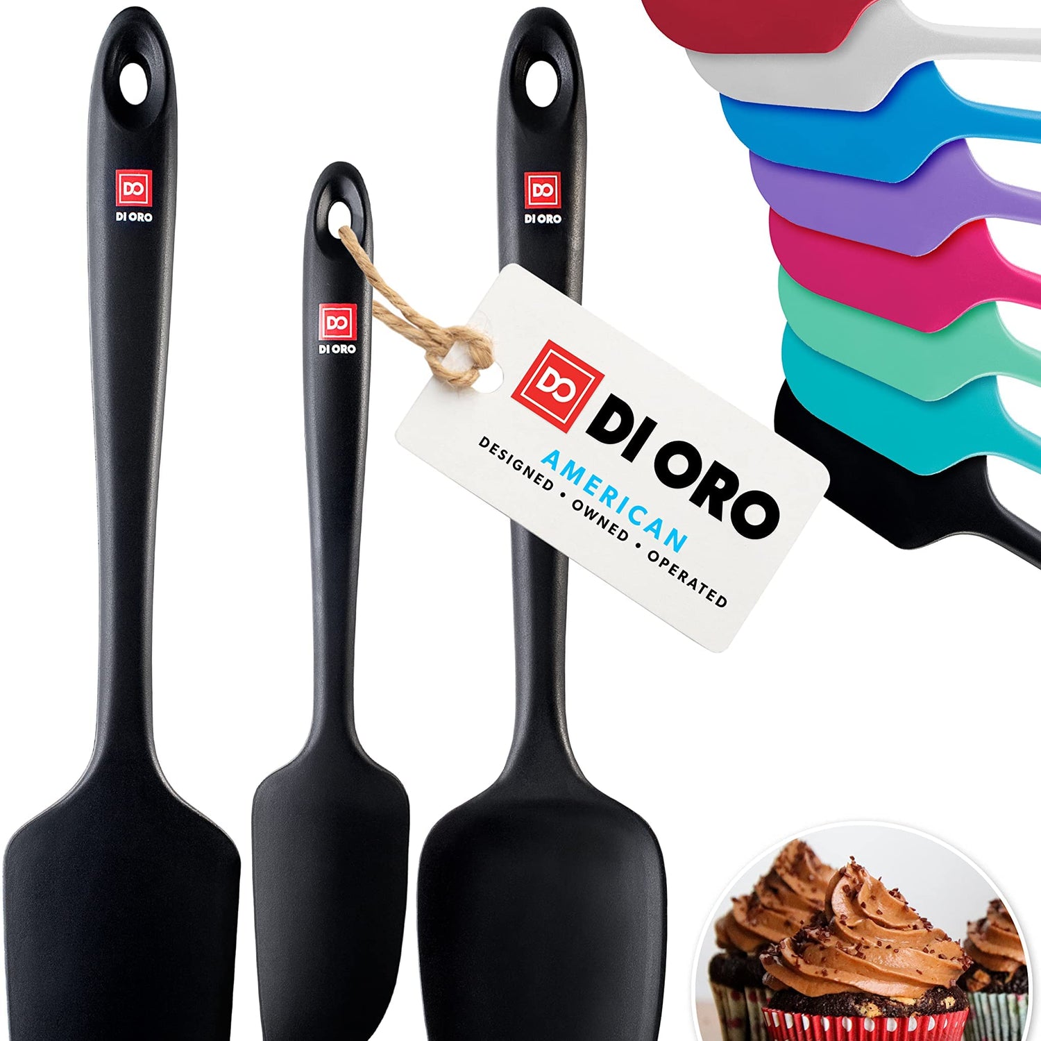 DI ORO Silicone Spatula Set - Rubber Kitchen Spatulas for Baking, Cooking, & Mixing - 600°F Heat-Resistant & BPA Free Silicone Scraper Spatulas for Nonstick Cookware - Dishwasher Safe (3pc, Black)