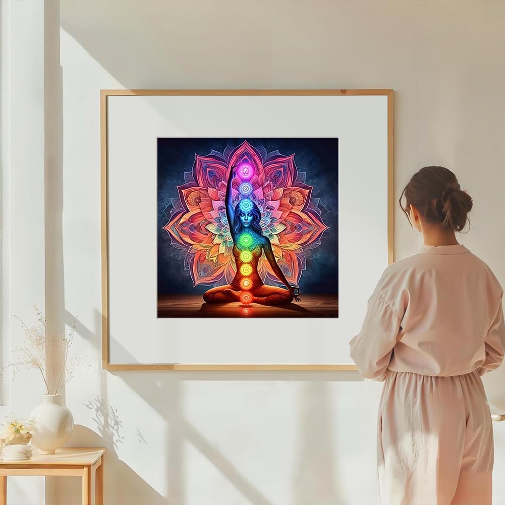 - Chakra Mandala Diamond Art Painting Kit: Enjoy relaxing diamond art with this chakra mandala design! Complete DIY craft set includes: 12×12-inch HD canvas, diamond pen (3&6-bead tips), wax pad, tray, and 30% extra 5D diamonds. No extra tools required