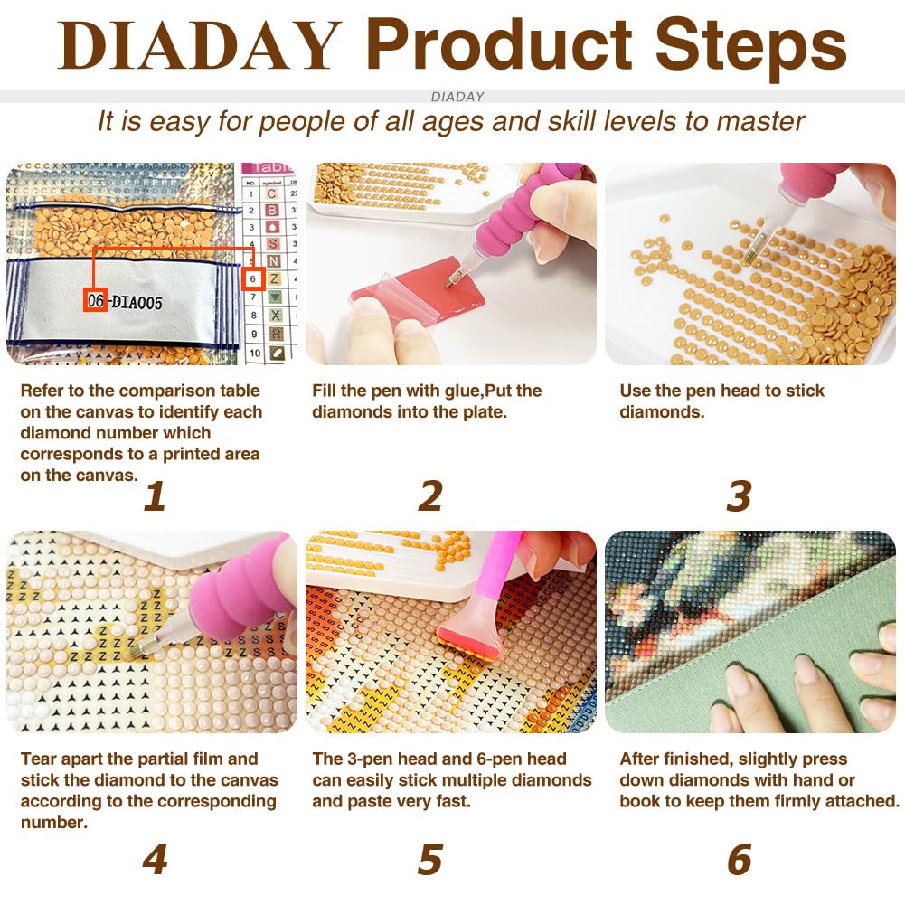 - DIADAY Customer Care: We value every 5D diamond kit and your diamond painting experience. Should any issues arise with your 5D resin diamond kit, We will spare no effort