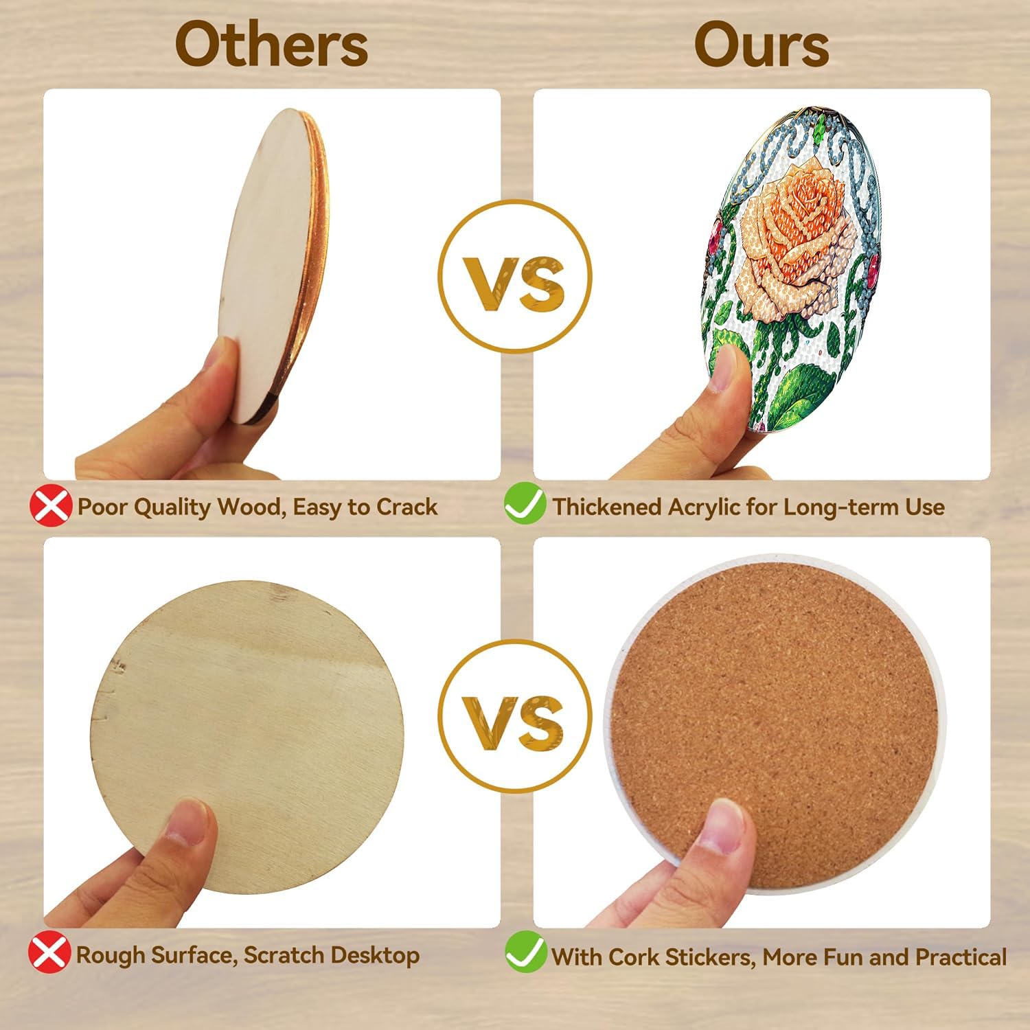 - Diamond Art Coasters Package Includes: You will receive 8pcs diamond art paintings coasters, 8pcs cork pads, 1pcs cup holder, 1 set colored diamonds, 1pcs clay glue, 1pc pen and 1pc diamond tray, which can meet your creation needs