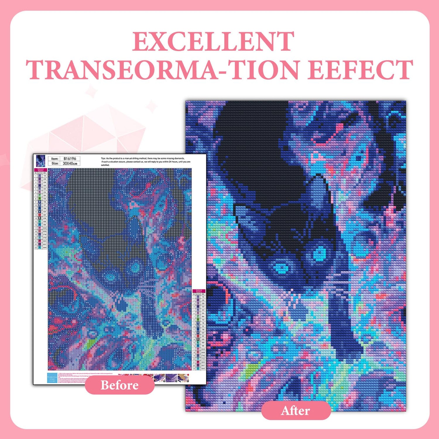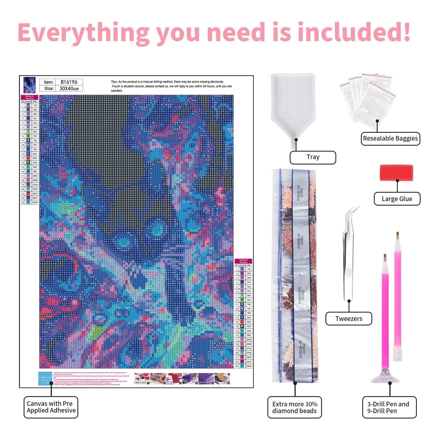 - 【Package Included】Black cat diamond painting kit contains all necessary tools. Include 1 * HD Environmental Protection Canvas (without Frame), 1 * Tweezers, 1 * 3-Drill Pen,1 * 9-Drill Pen, 1 * Large Glue, 1 * Tray, 8 * Spare Ziplock Bags, and add an Extra 30% Diamonds.The kit contains all the necessary items to help you complete diamond art!