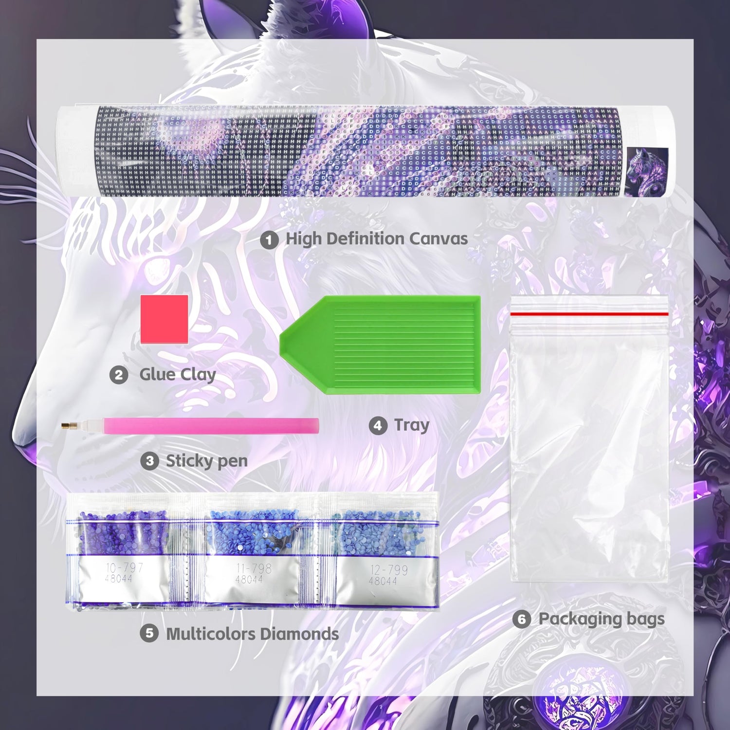 Diamond Art Kits for Adults, 5d DIY Full Drill Purple Pattern White Tiger Diamond Painting Kits for Adults Beginners, Diamond Painting Art Craft Kits for Adults, Wall Home Decor(No Frame) 12x16 Inch