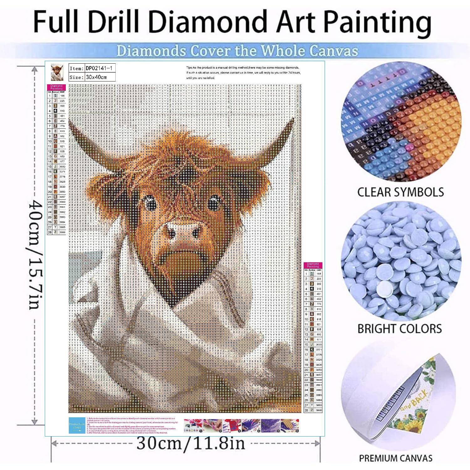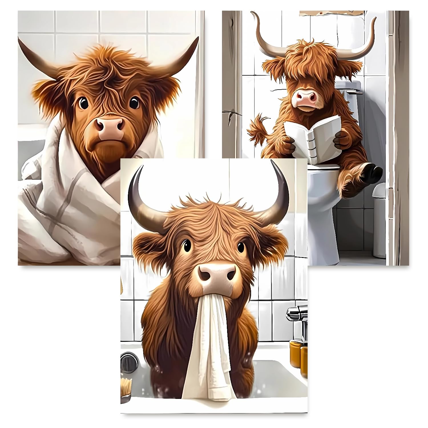Diamond Art Kits for Adults Beginner, 3 Pack Funny Highland Cow Diamond Painting Kits 5D Diamond Dots Gem Art Crafts with Tools Round Full Drill Funny Crafts for Home Wall Decor&Gift 12X16 inch