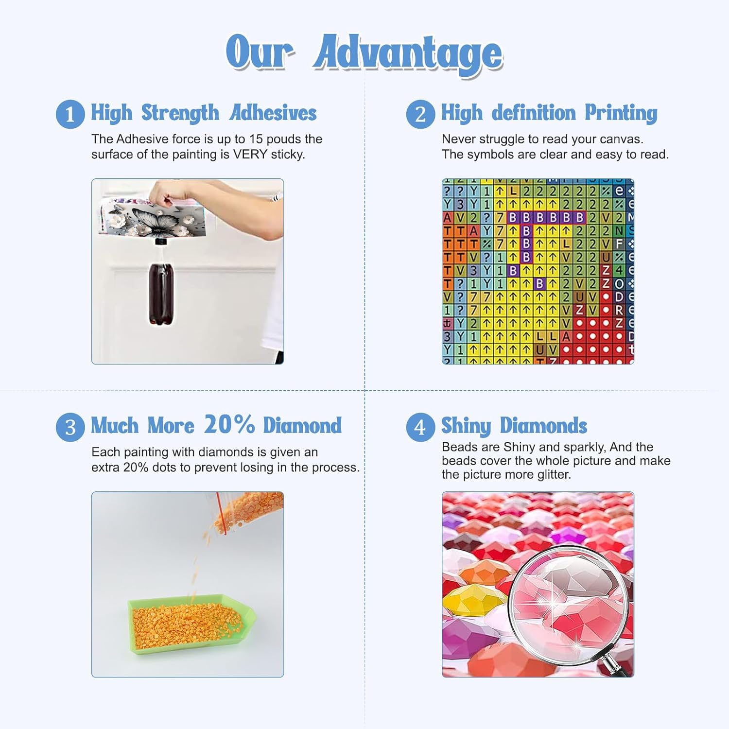- Sparkling Diamonds: The diamond painting process is made easier and more enjoyable with high-quality rhinestones. Each diamond bead features 26 facets for exceptional shine, creating a vivid, three-dimensional effect that is more vibrant than resin or round diamonds.