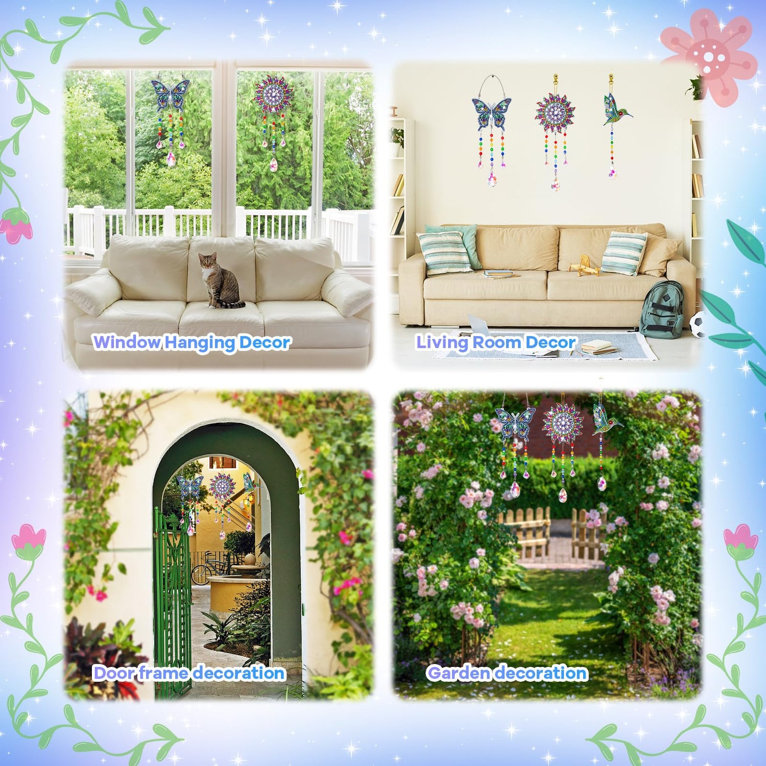 - 【ALL-IN-ONE CREATIVE KIT】This 5D diamond painting kit combines wind chime crafting, suncatcher design and gem art into one immersive activity. Includes 3 crystal pendants, 500+ color-coded diamonds, and complete wind chime accessories. The dual-sided acrylic panels allow creating shimmering window decorations that cast rainbow reflections in sunlight. Ideal gift for developing fine motor skills and artistic in 6-12 year old girls.