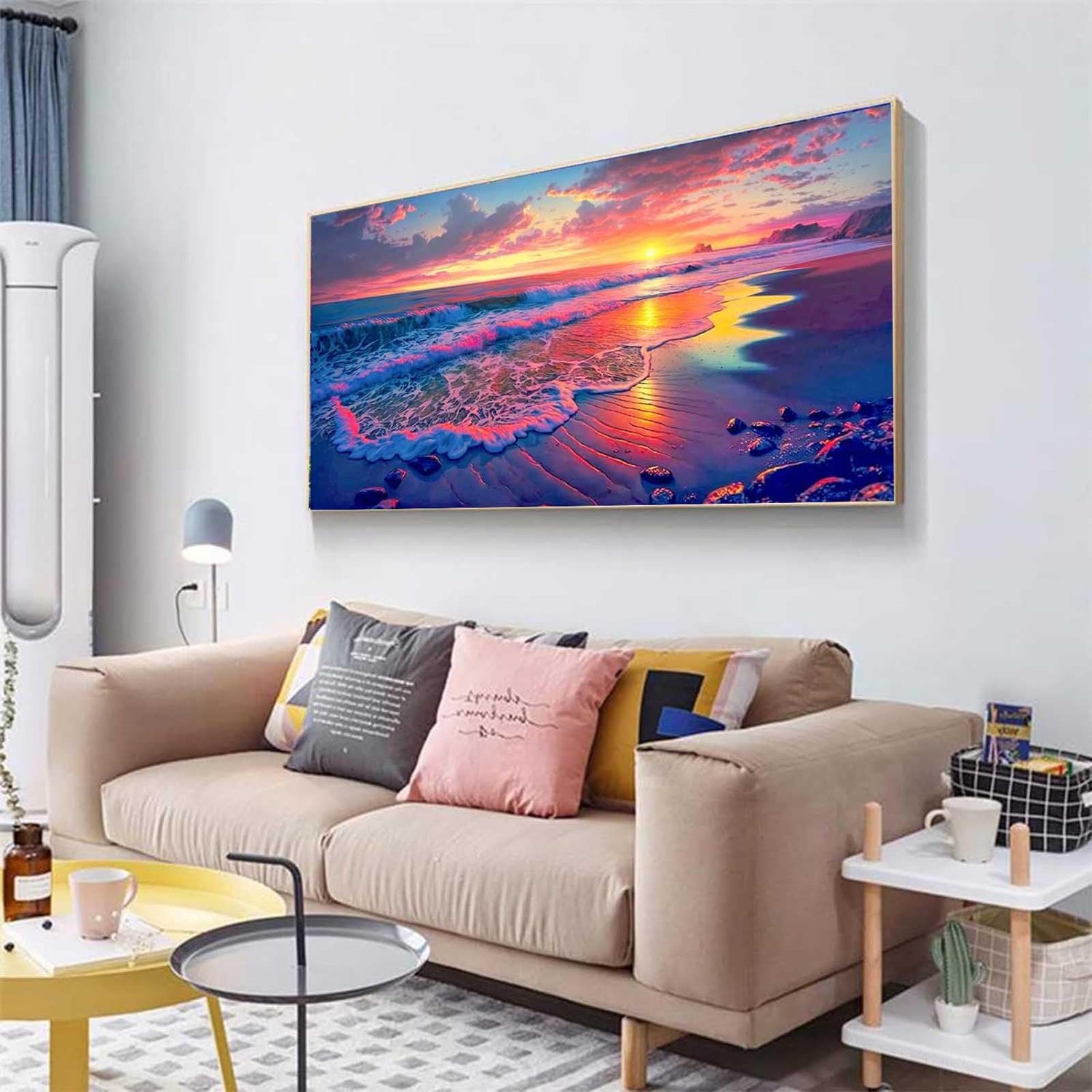 Diamond Painting Kits for Adults,Large Sunset Ocean Beach Diamond Art Painting for Beginners, Diamond Round 5D Full Drill Paint with Diamonds Pictures Gem Art Painting Kits DIY Crafts Kits 28X16in