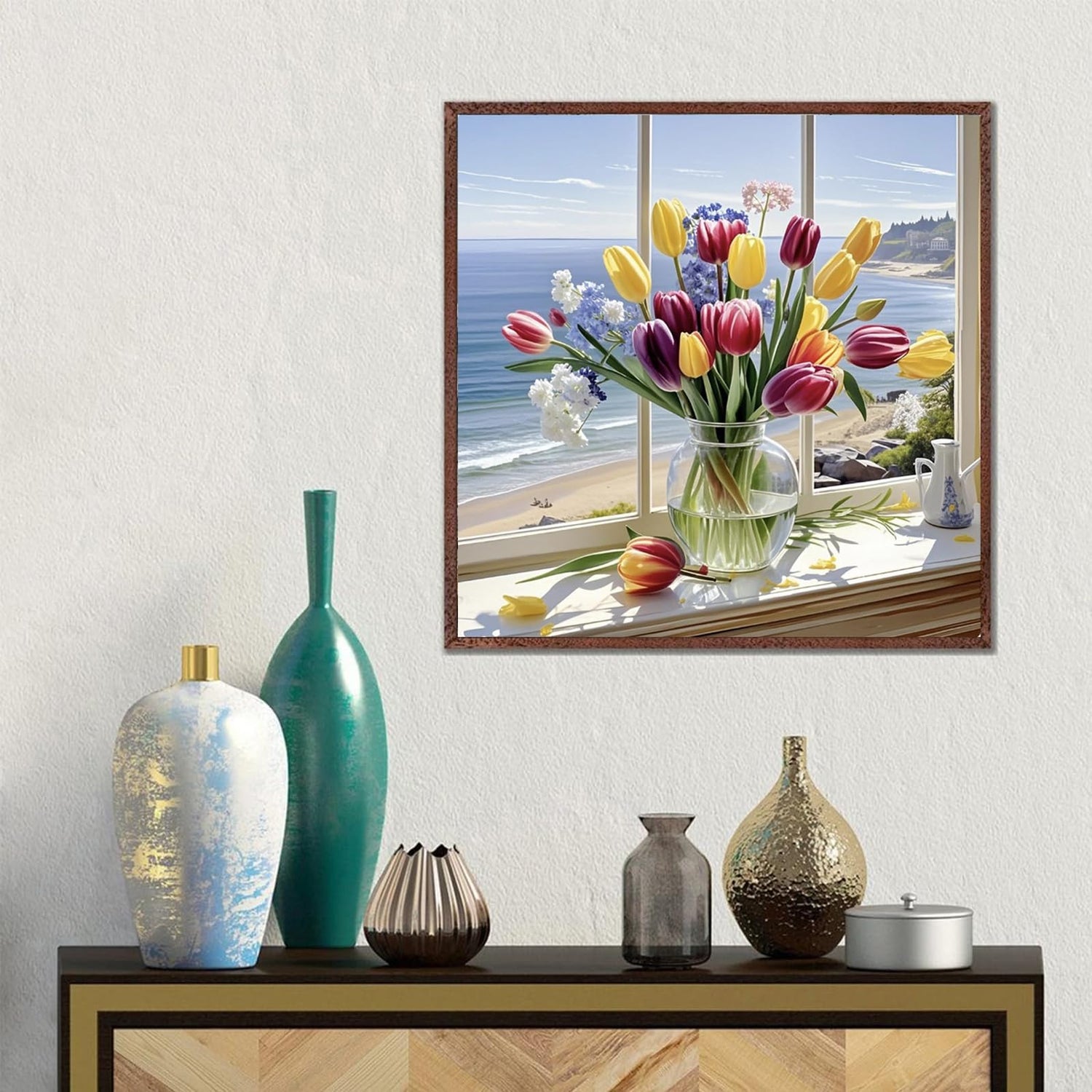 Diamond Painting Kits for Adults,Windowsill Tulip Diamond Art Kits for Beginner,DIY Full Drill Diamond Painting Flower Gem Art and Crafts, 5D Diamond Painting Flowers12x12IN